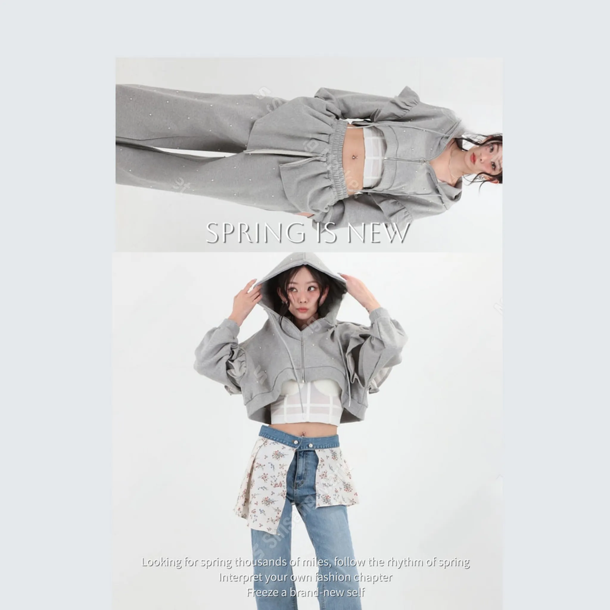 春款燙鑽半高領針織上衣套裝