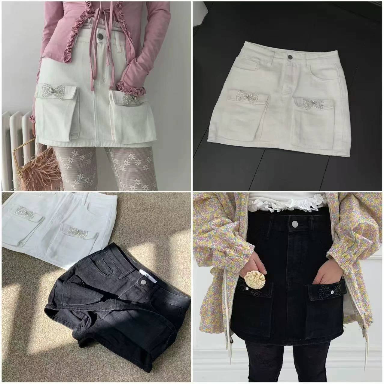 顯瘦重工釘珠蝴蝶結牛仔短裙