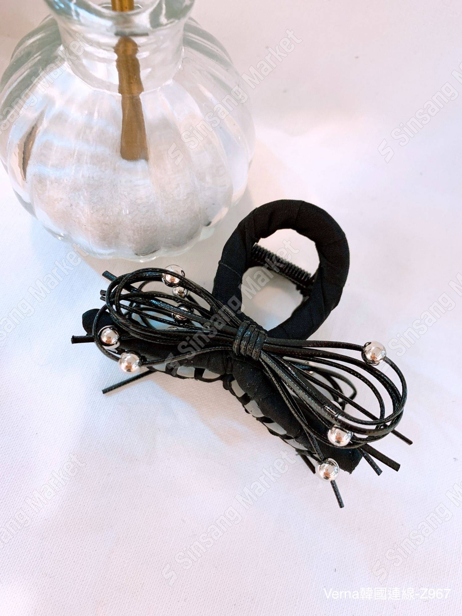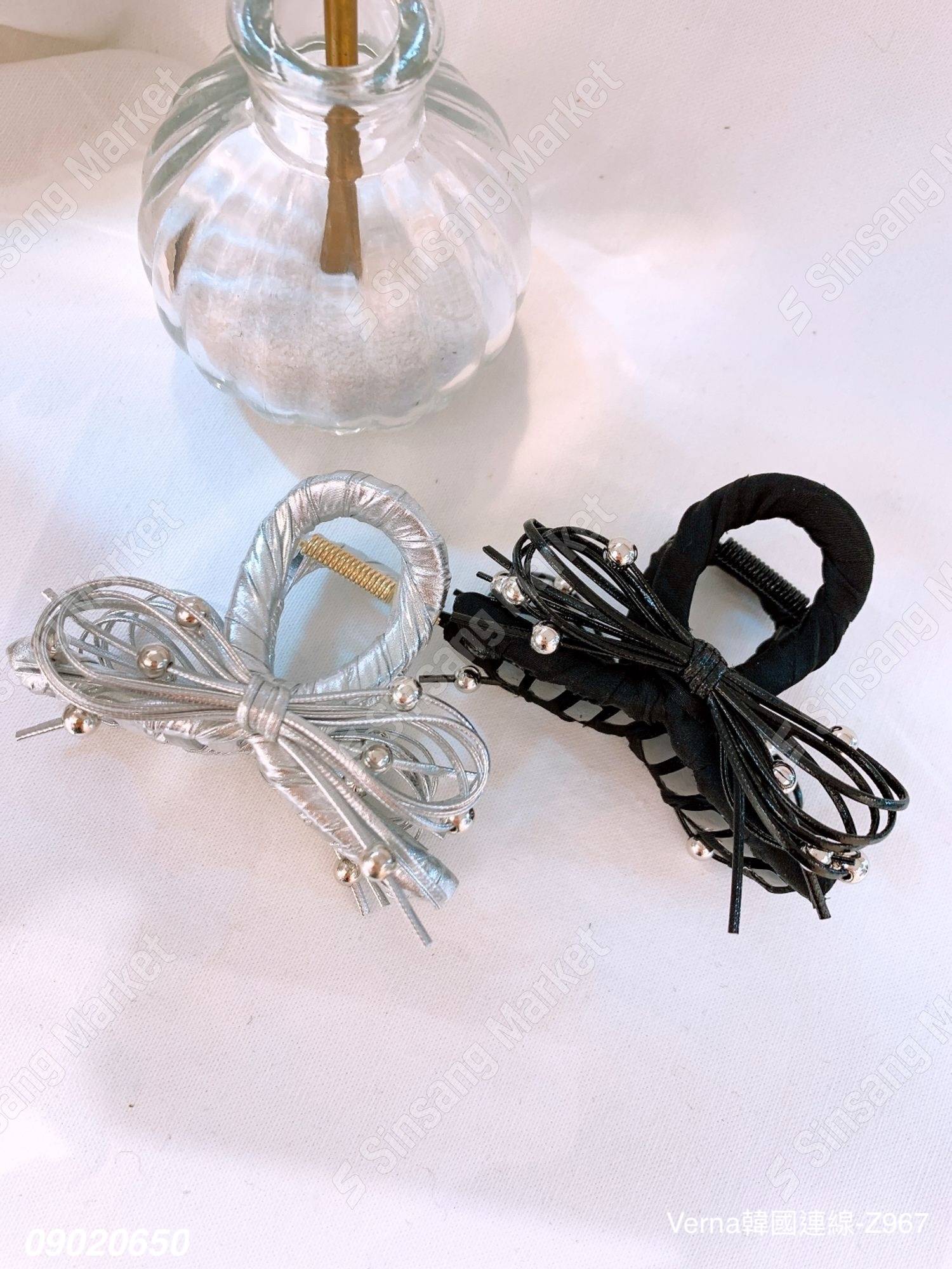 韓系皮革蝴蝶結抓夾