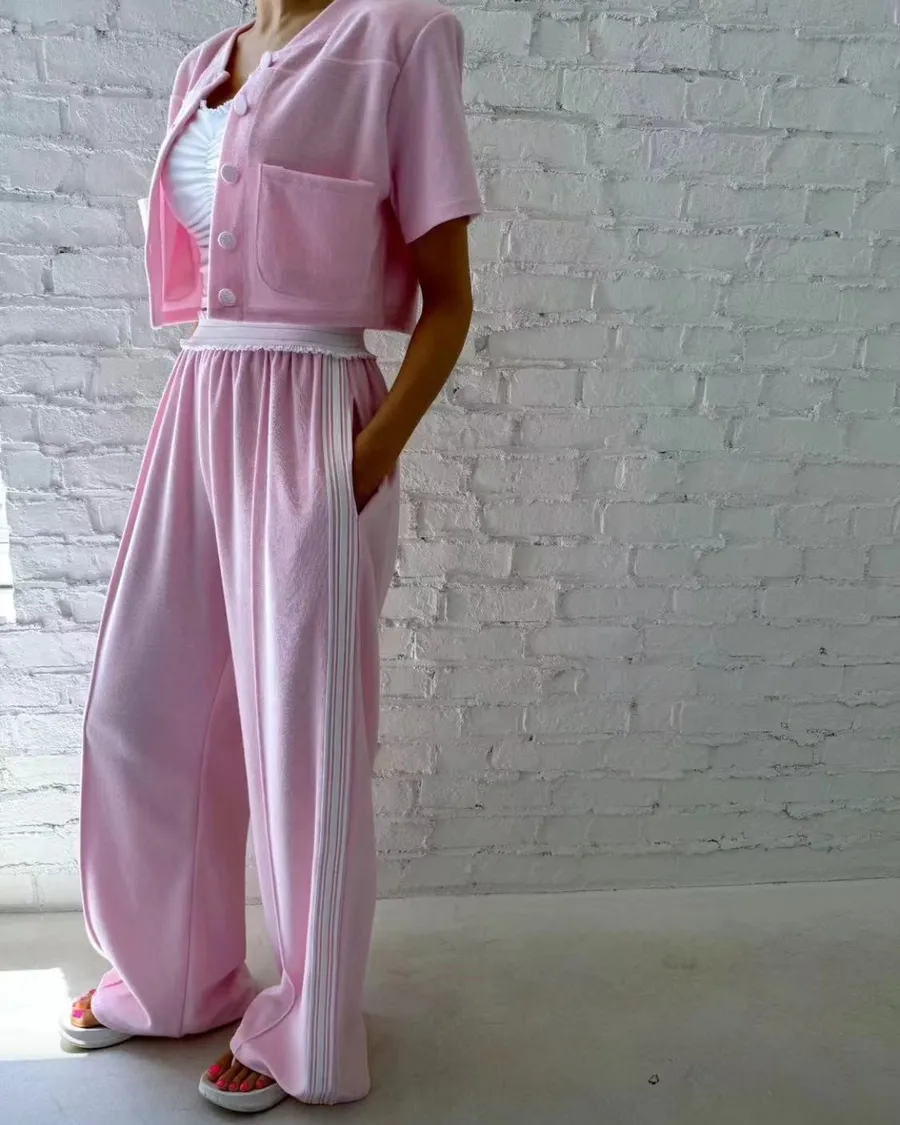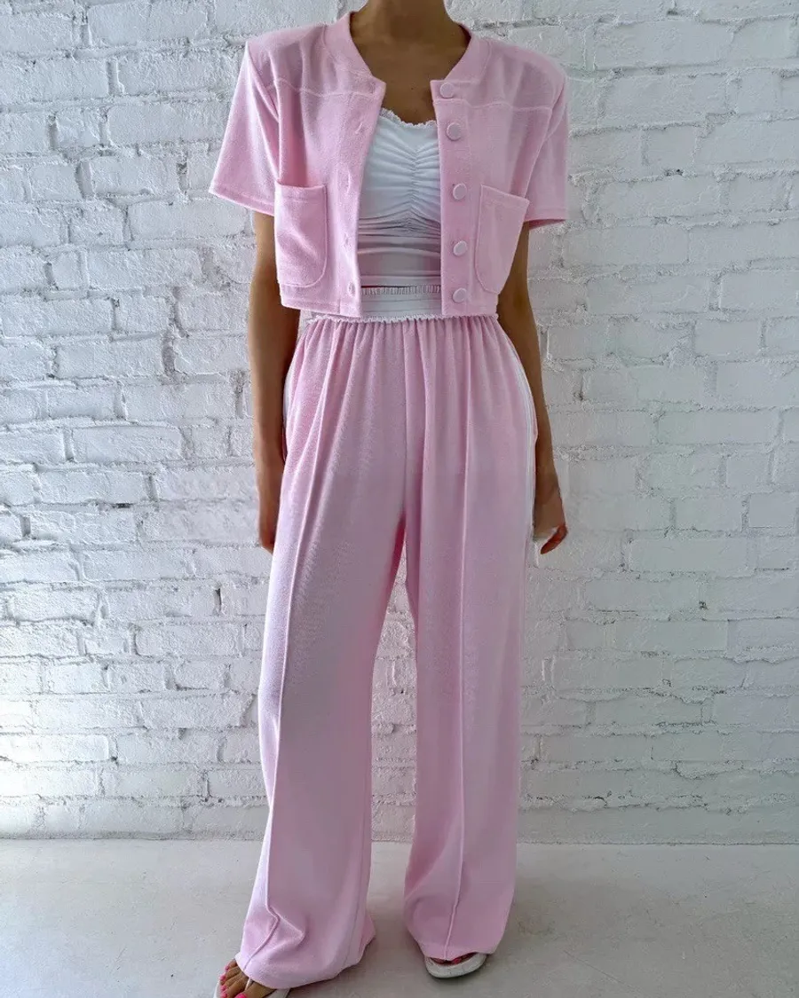 粉色修身質感套裝