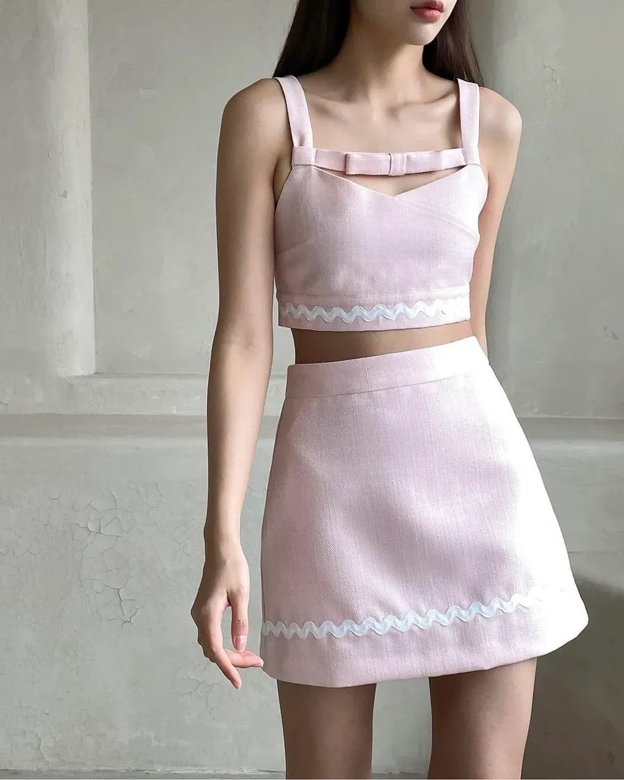 小香風粉色套裝