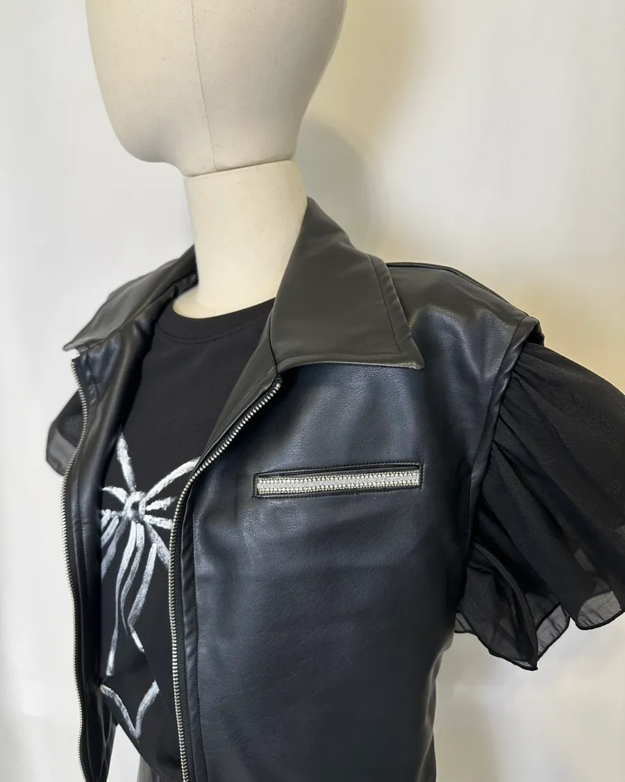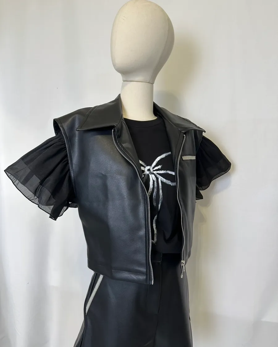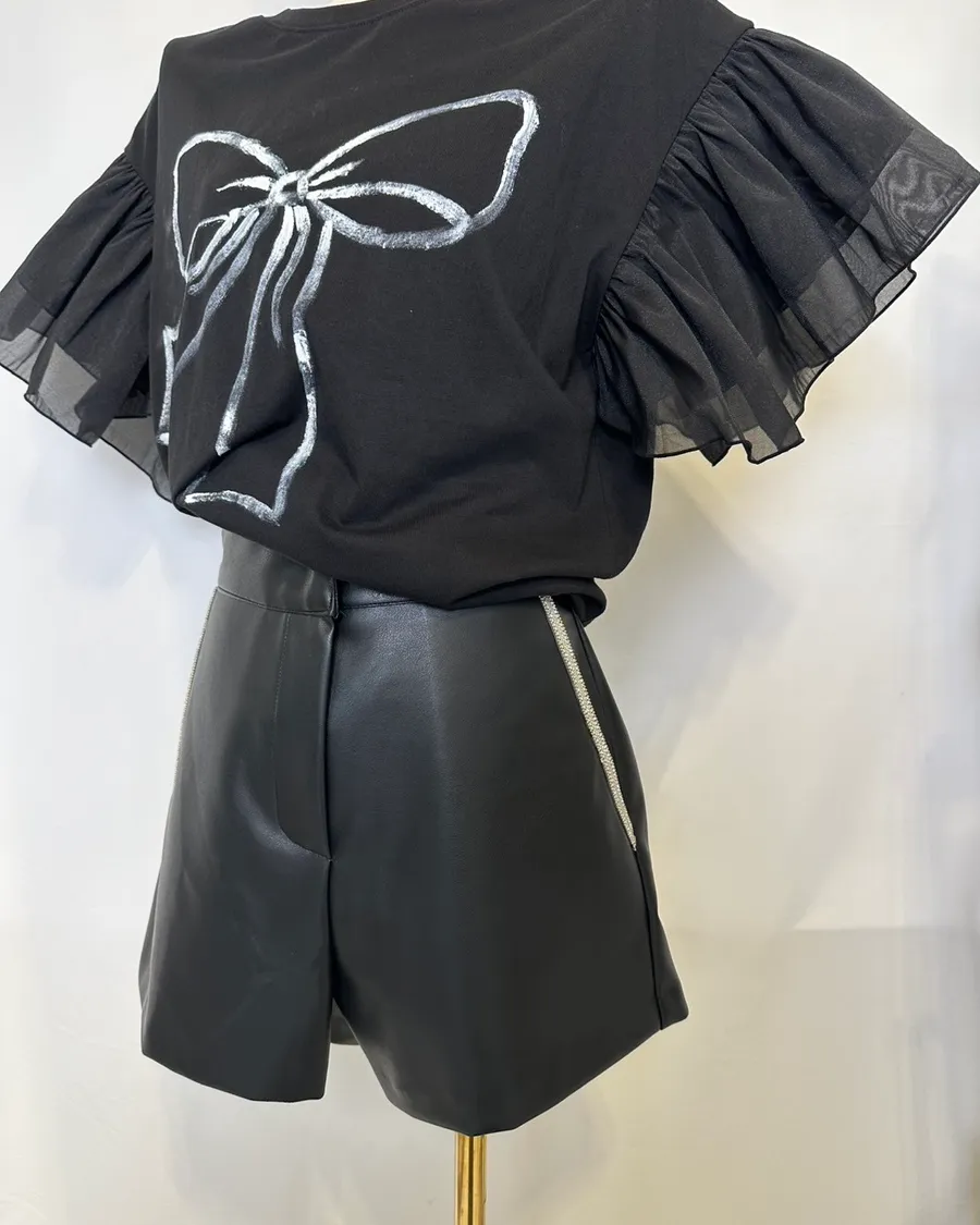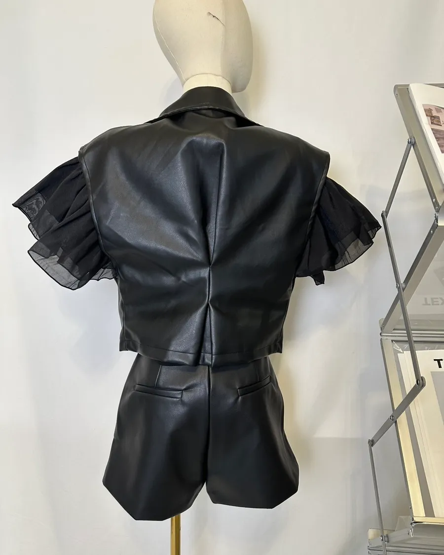 個性水鑽拉鍊翻領短褲套裝