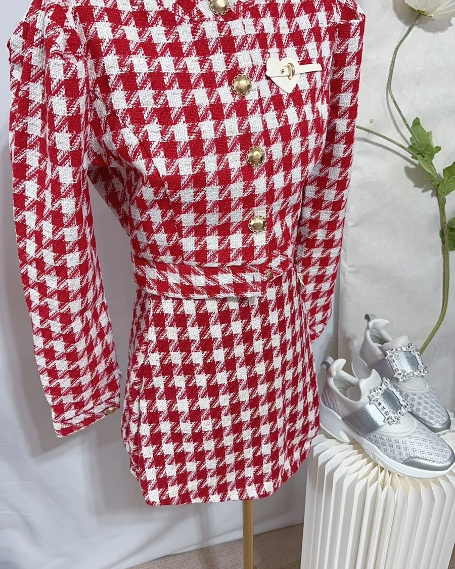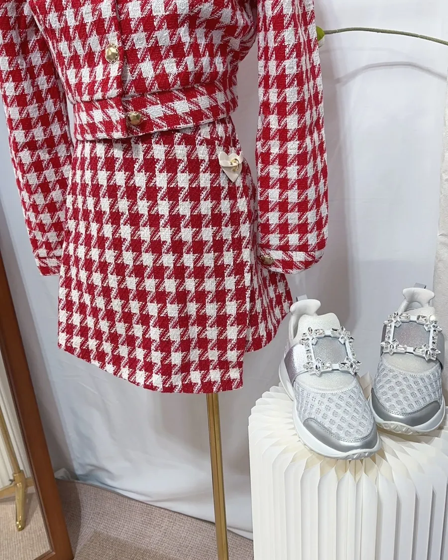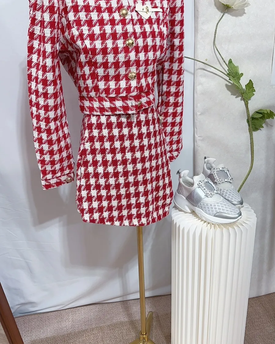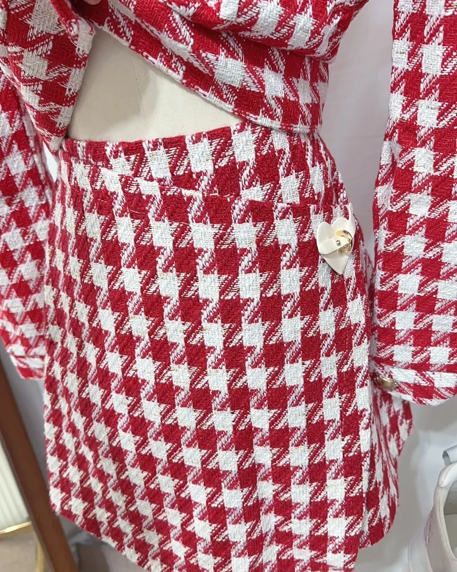 千金千鳥格小香風套裝