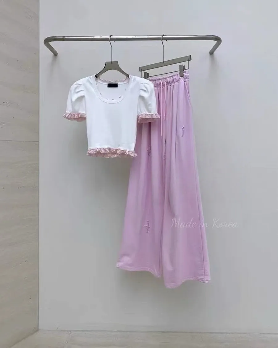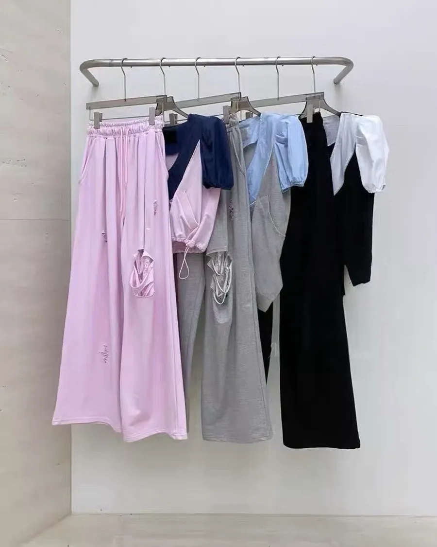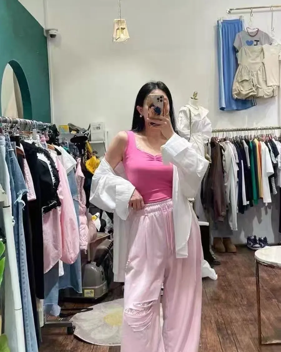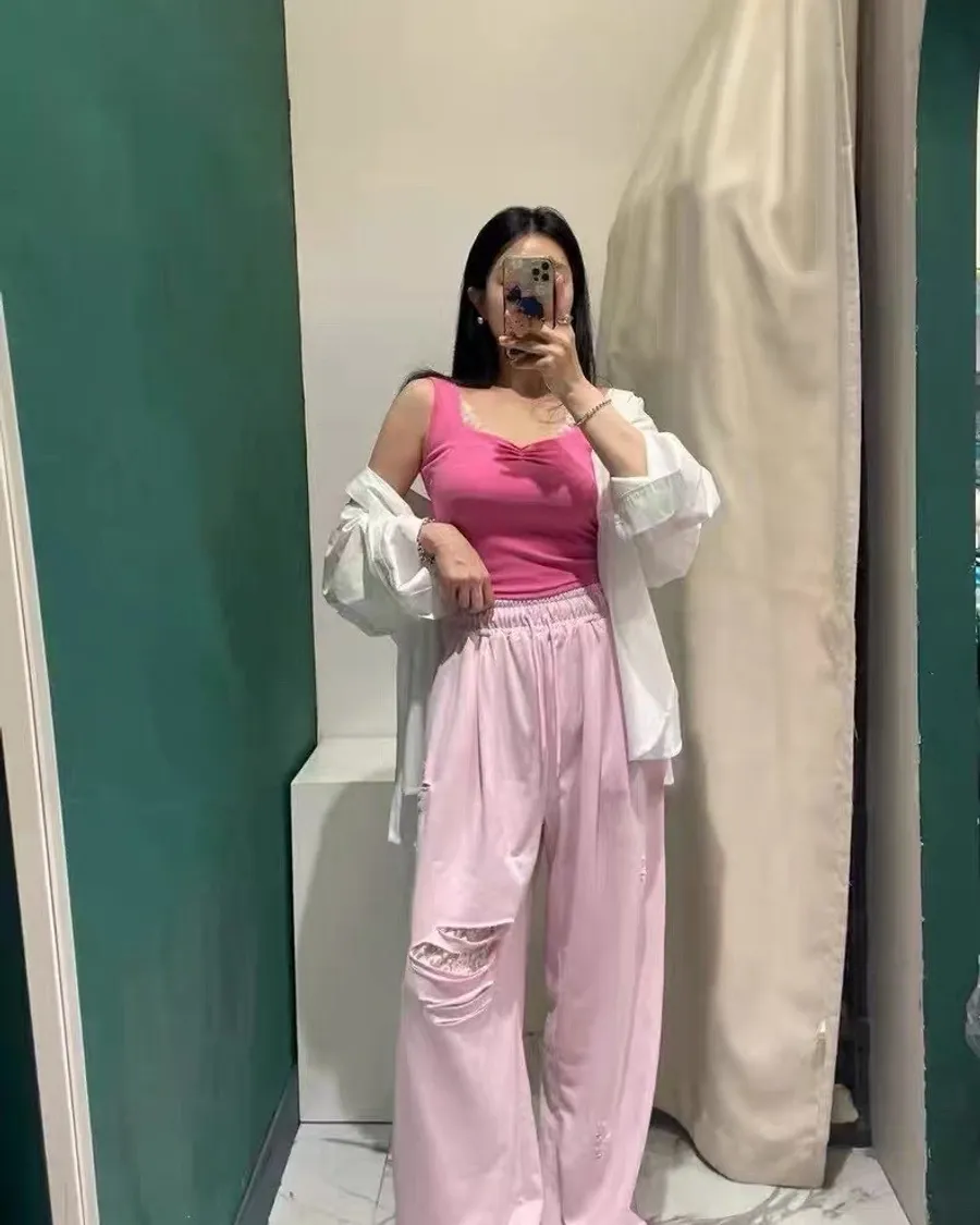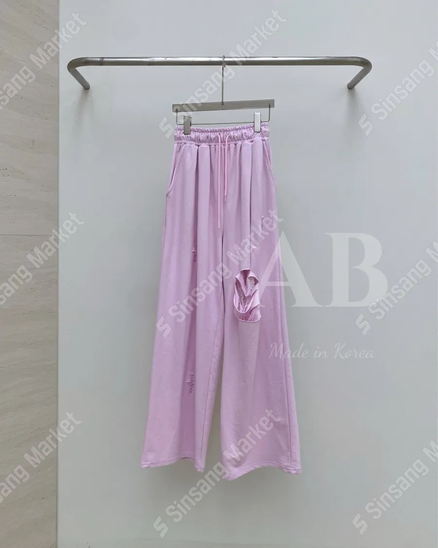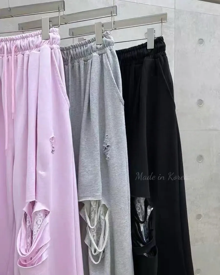 夏季新款破洞寬鬆休閒長褲