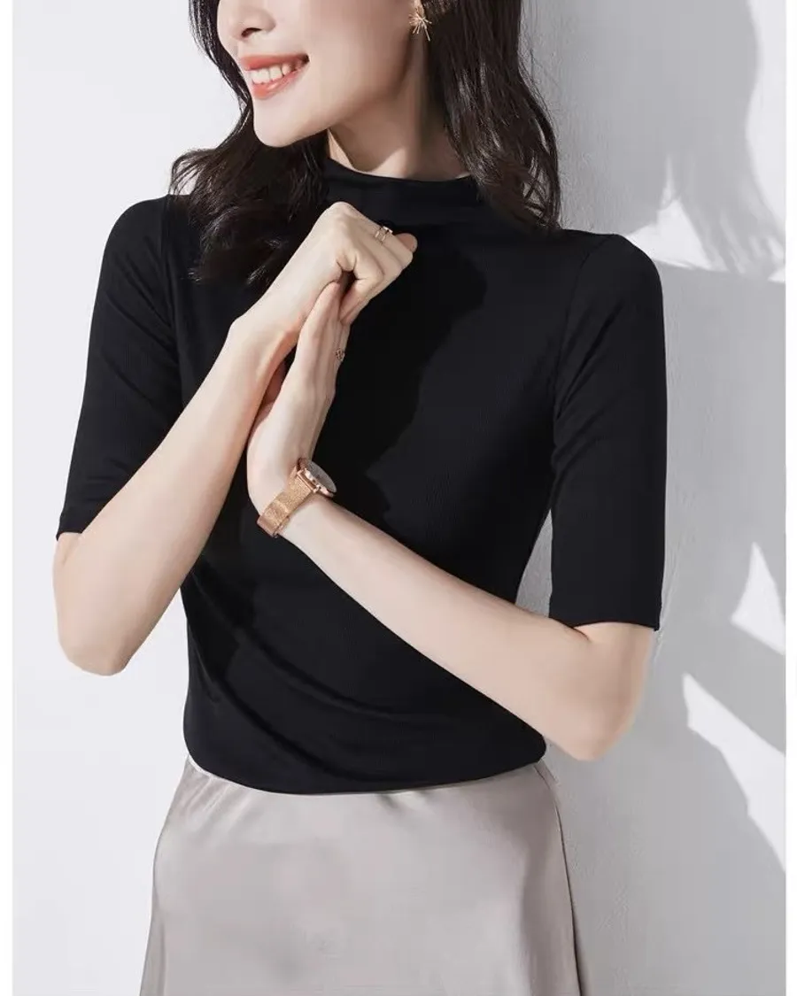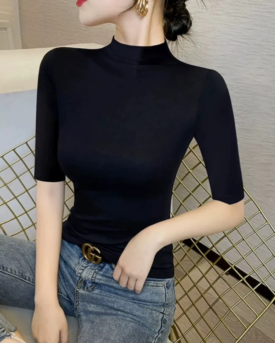 黑色半高領中袖修身上衣