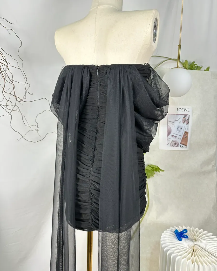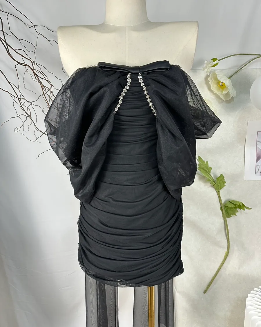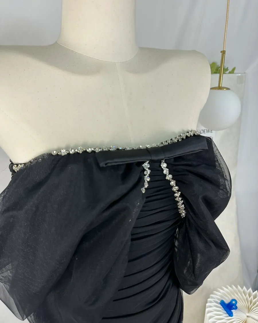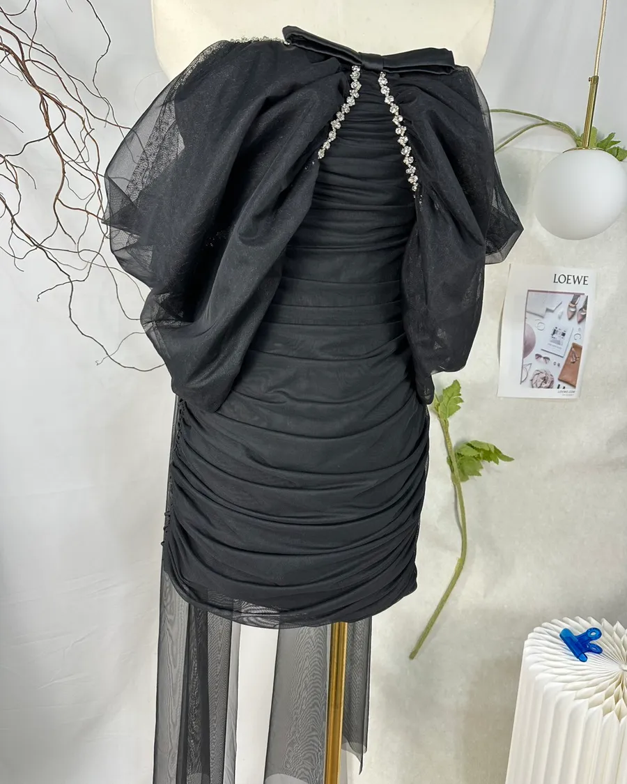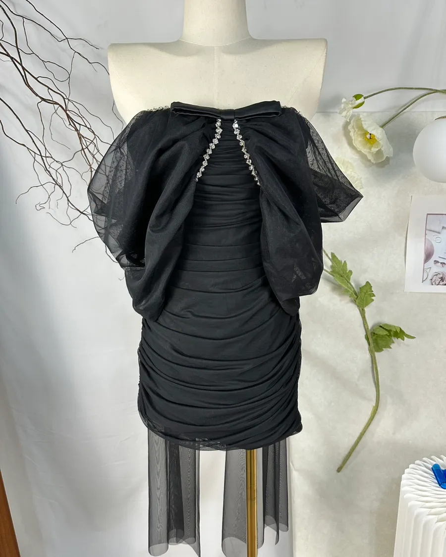 法式重工釘鑽網紗露肩洋裝