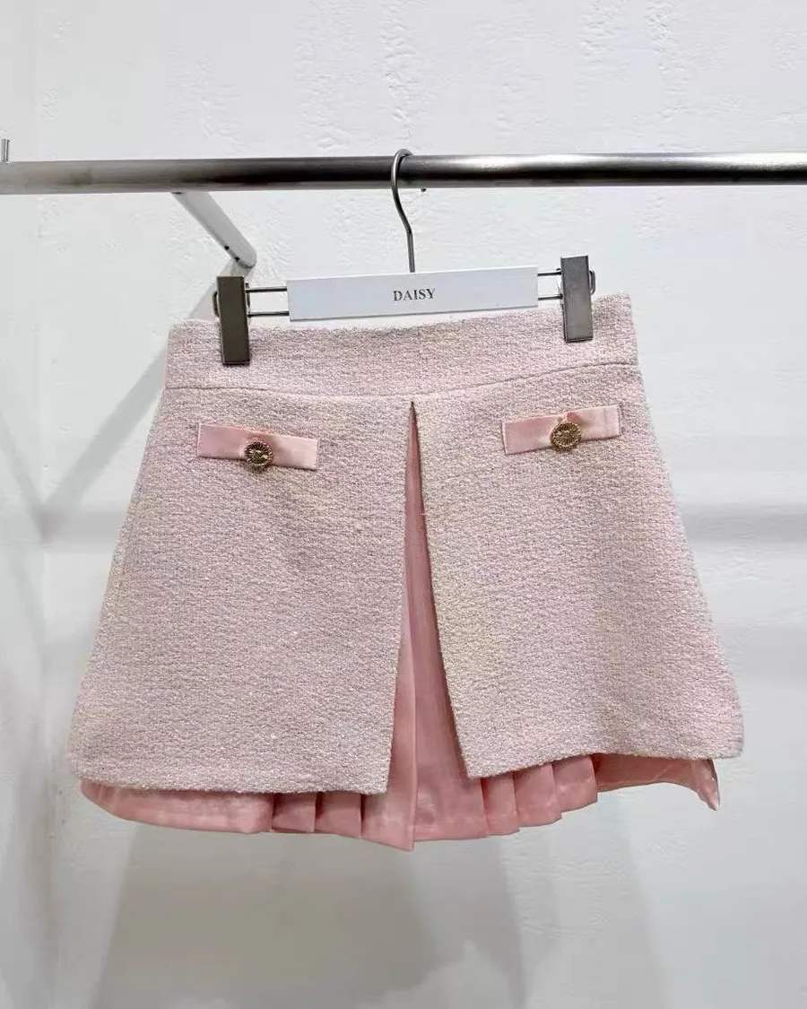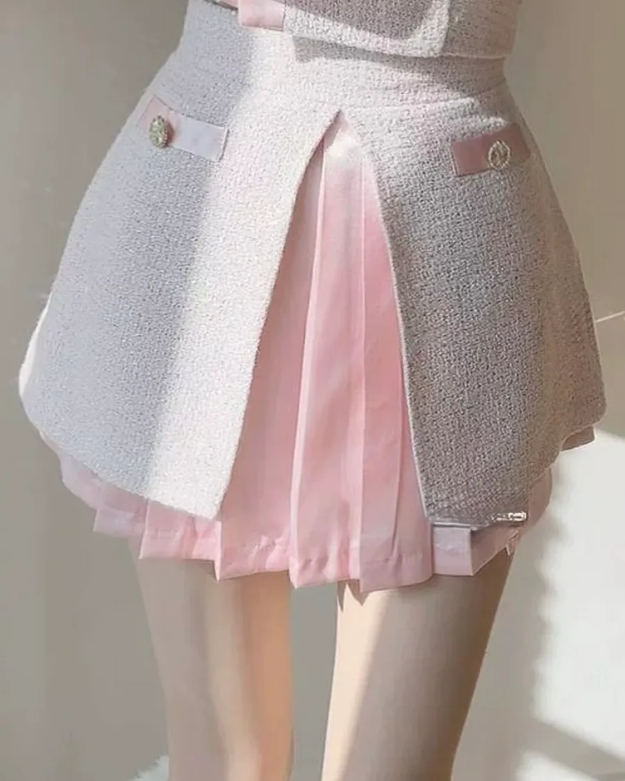 甜美撞色拼接高腰短裙