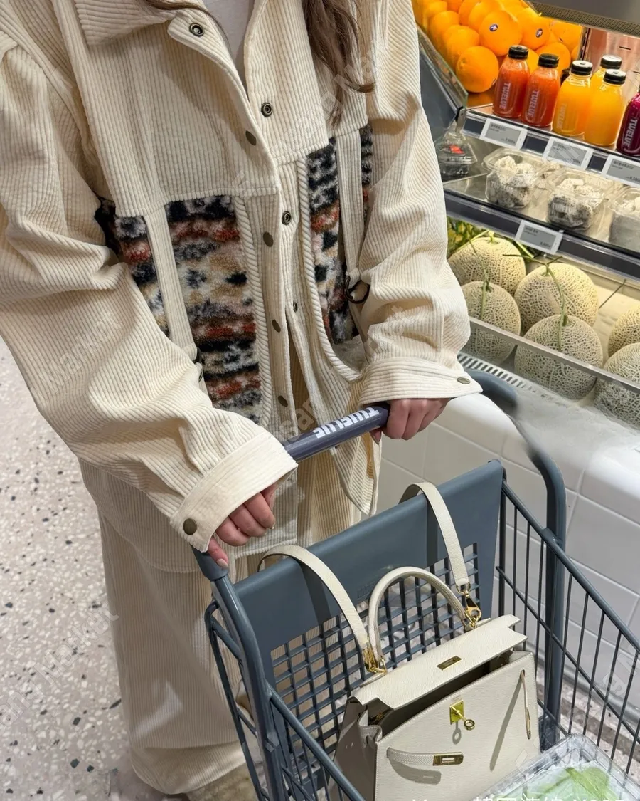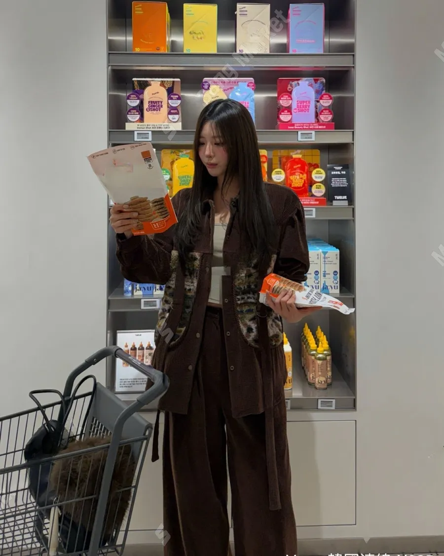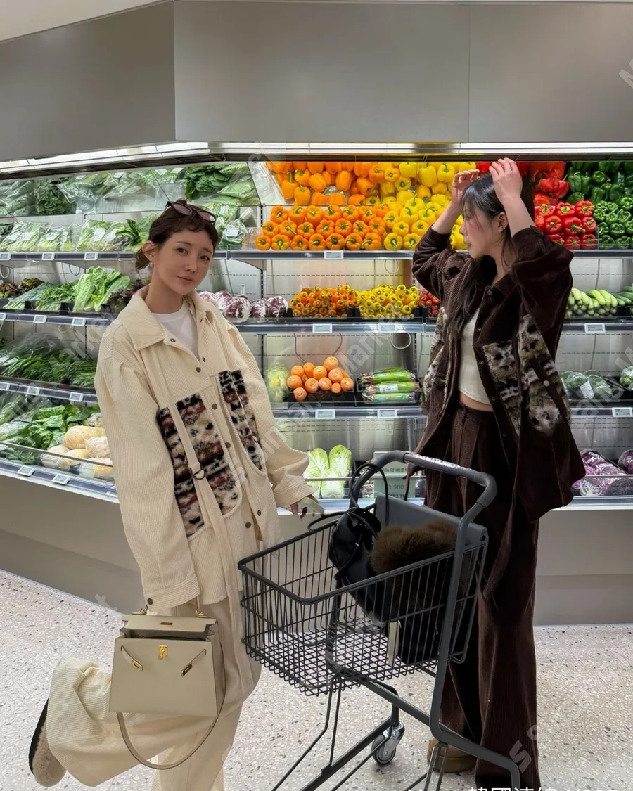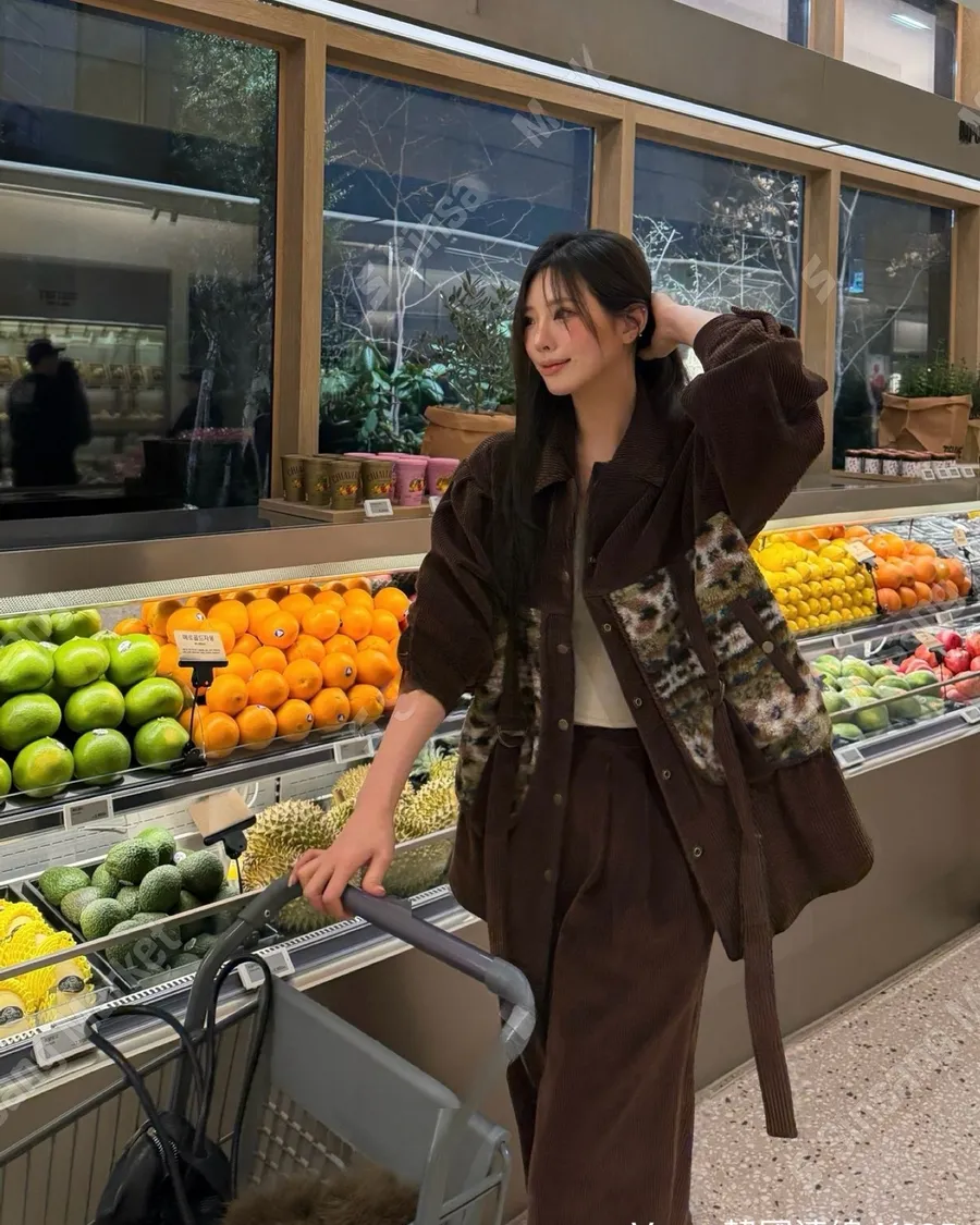 冬季翻領暗扣拼接燈芯絨寬鬆上衣套裝