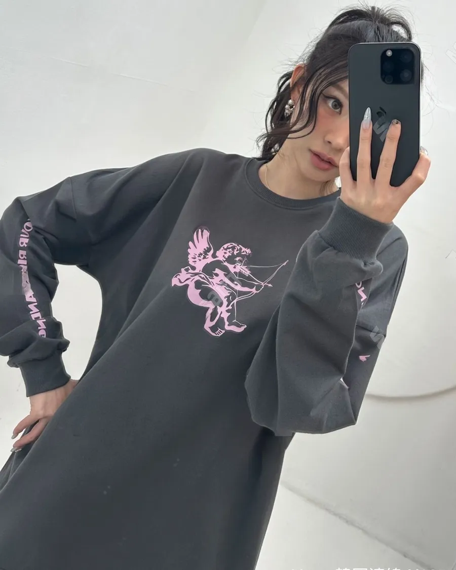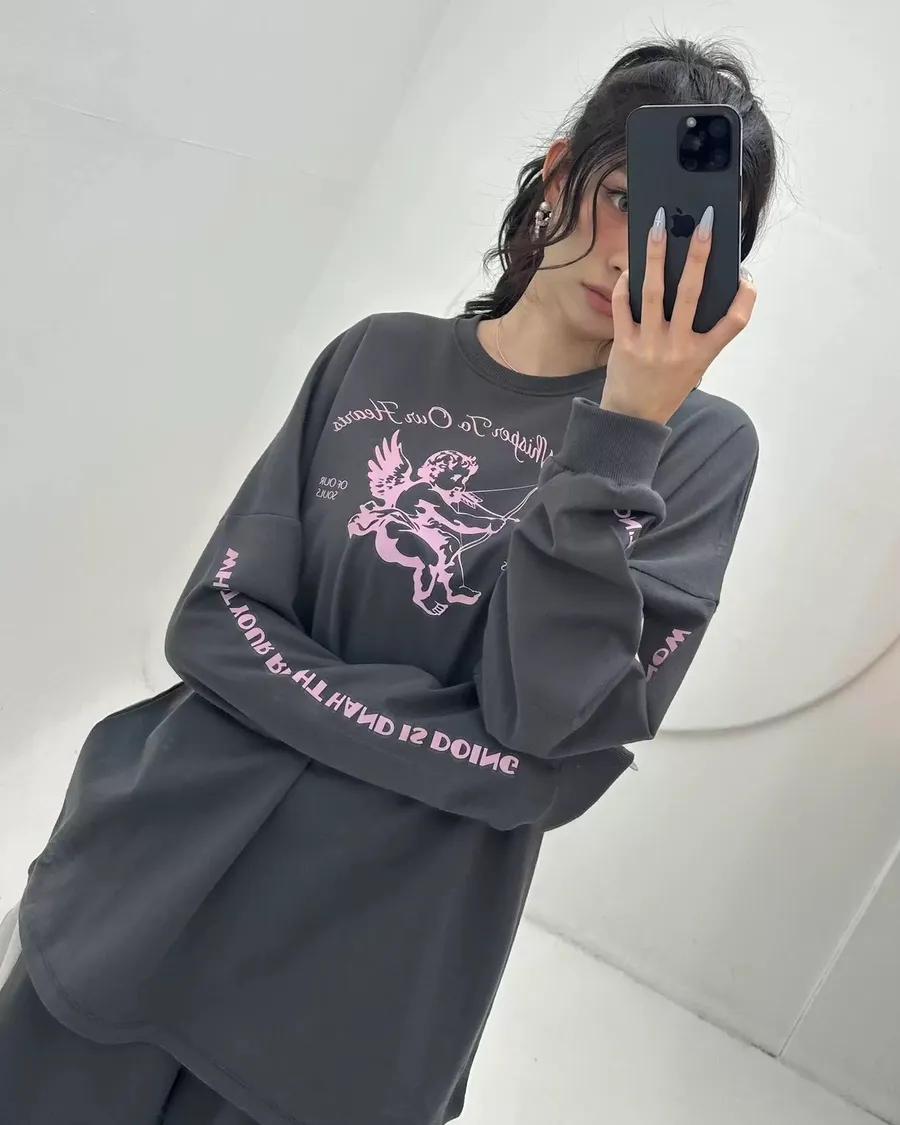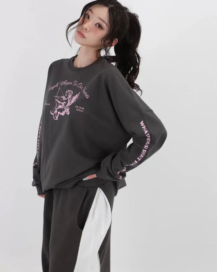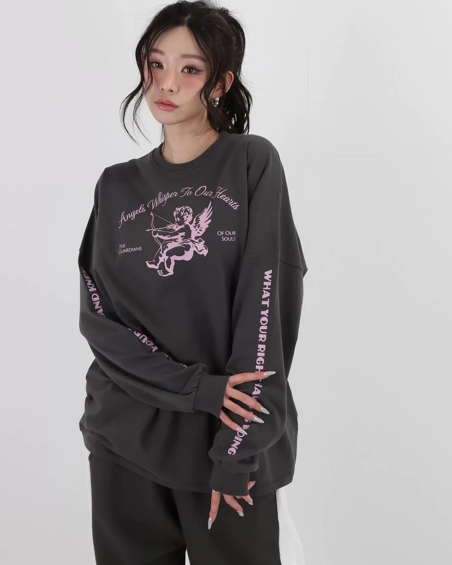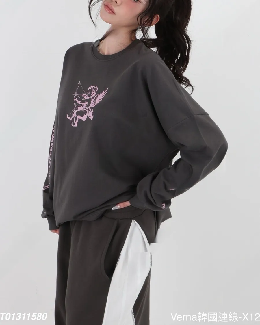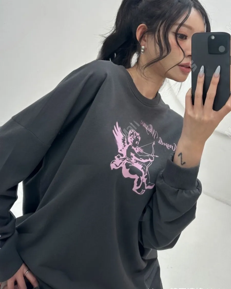 減齡邱比特印花慵懶休閒寬鬆上衣