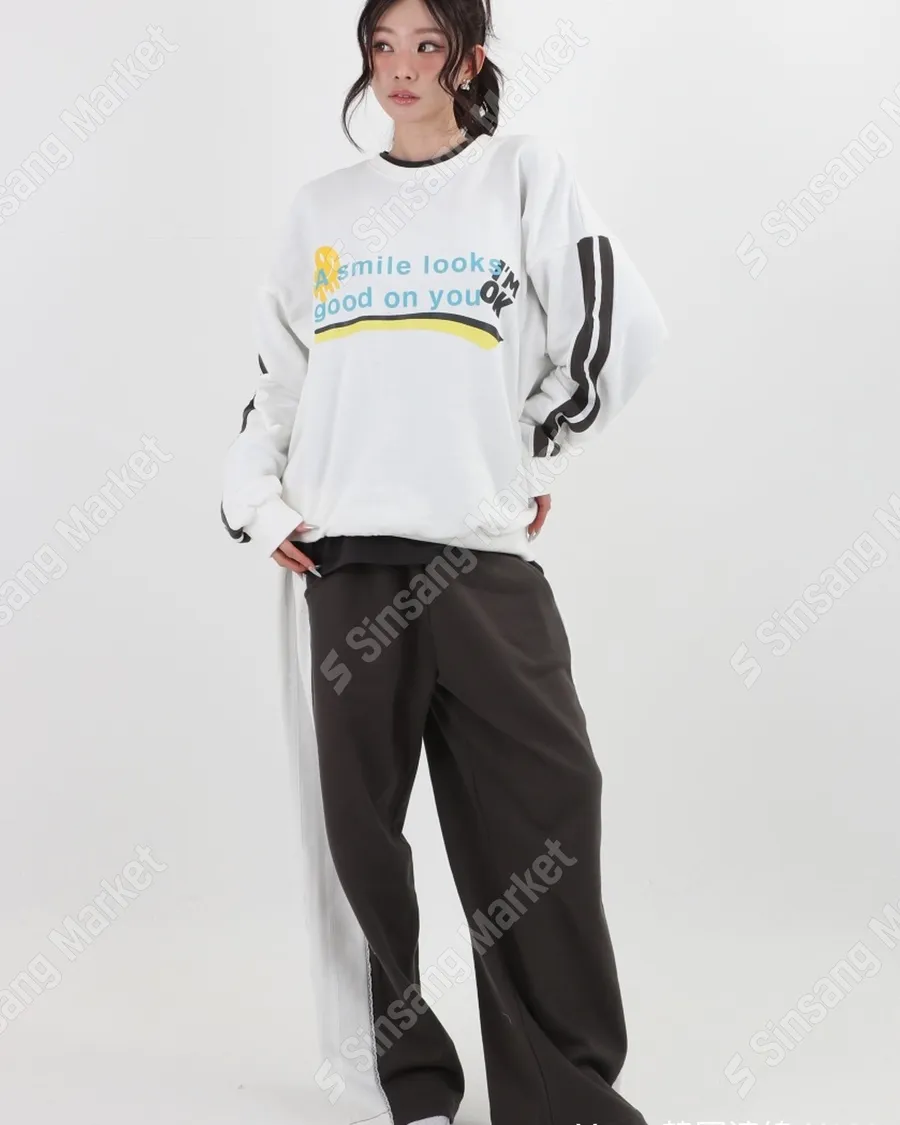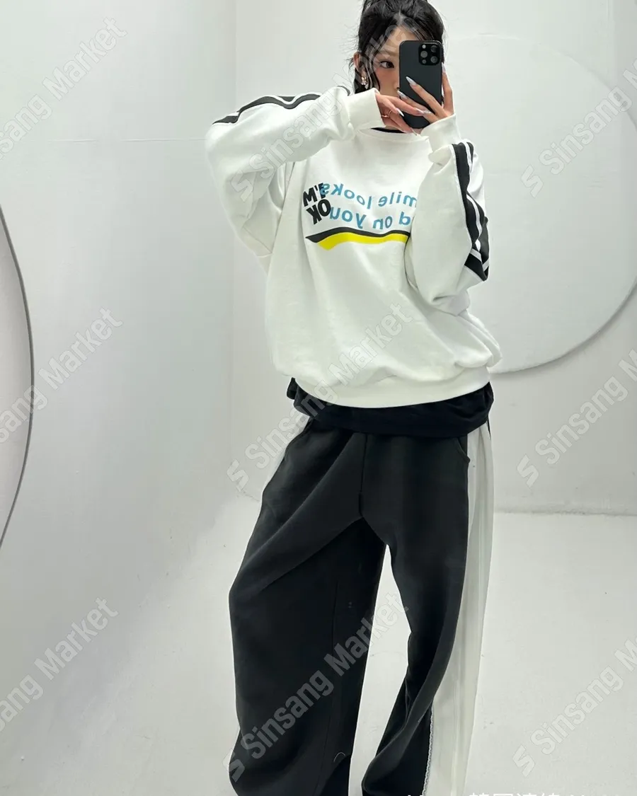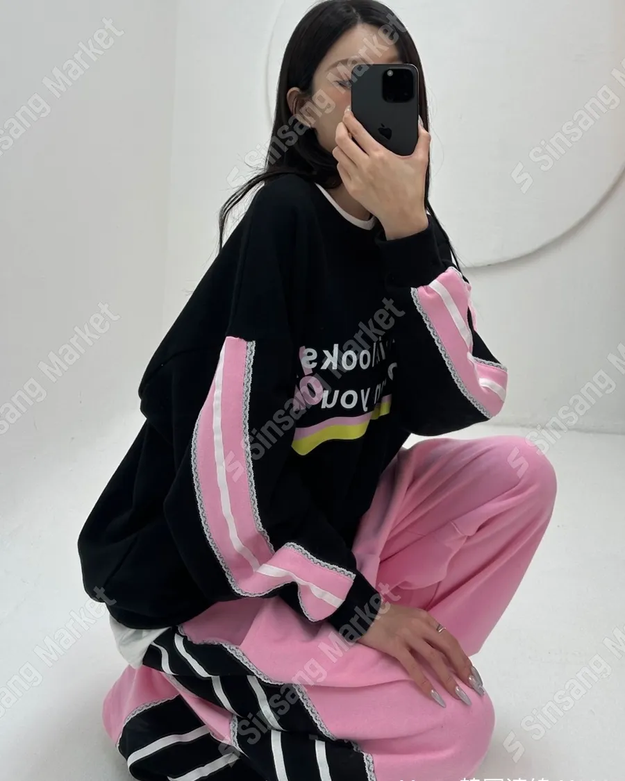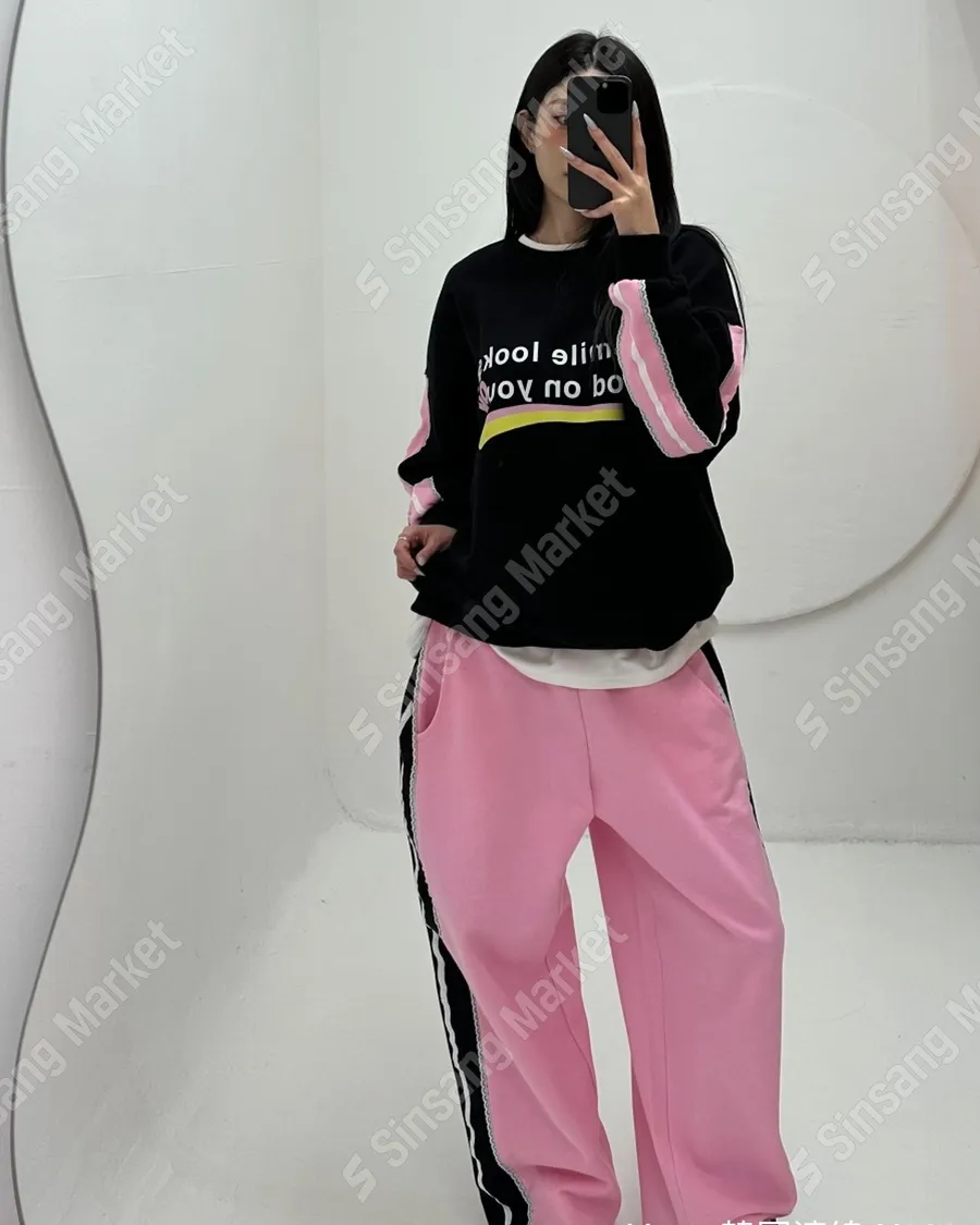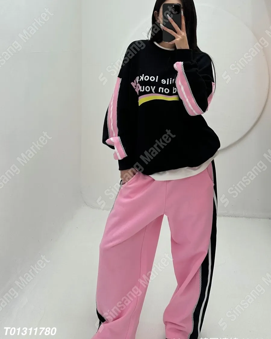春季潮流拼色字母休閒套裝