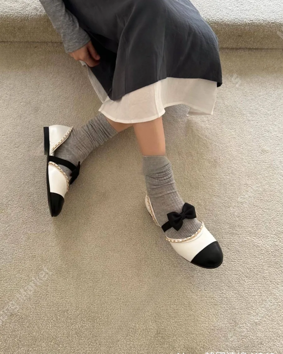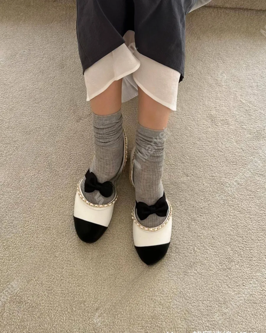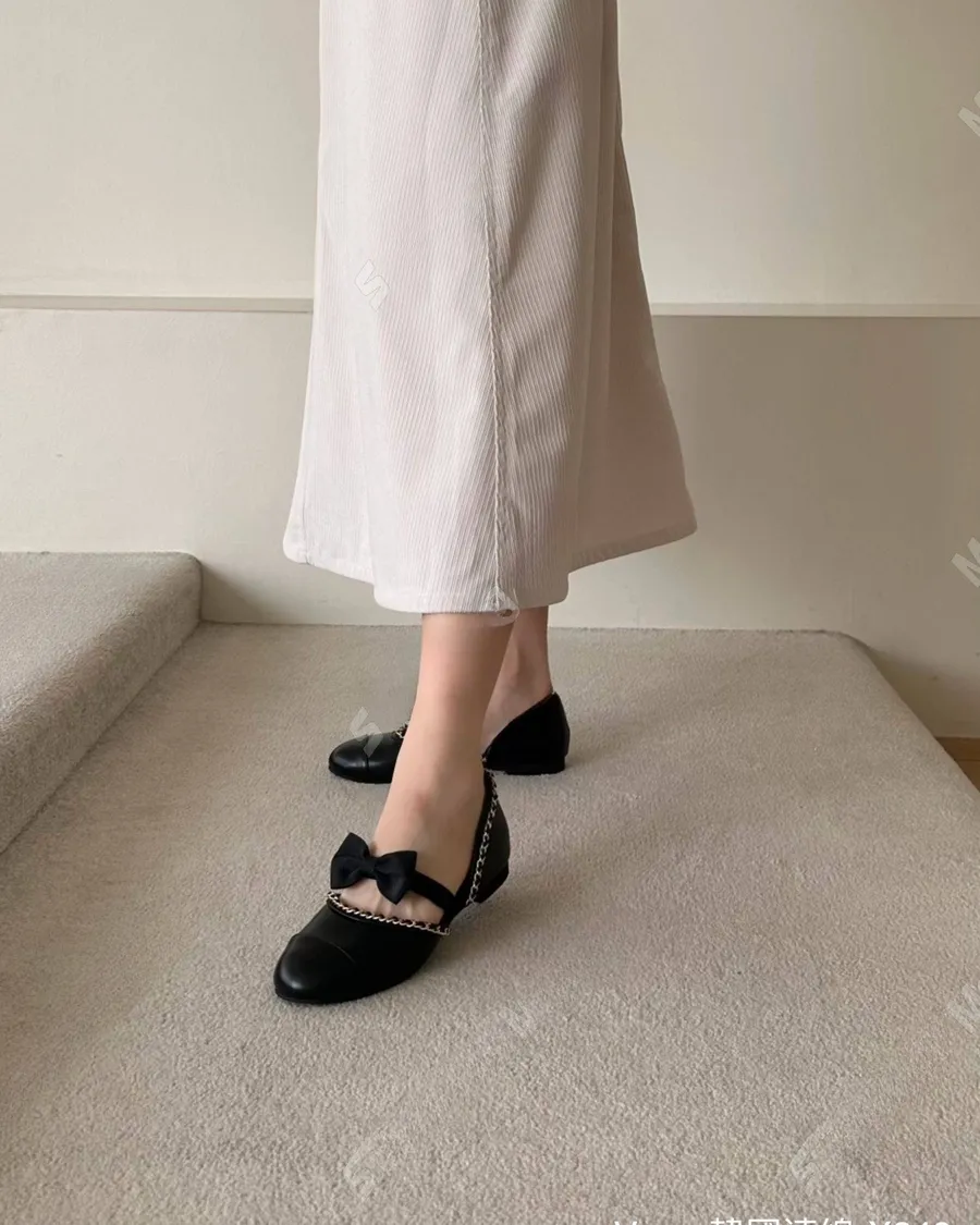小香風蝴蝶結鏈條瑪莉珍鞋