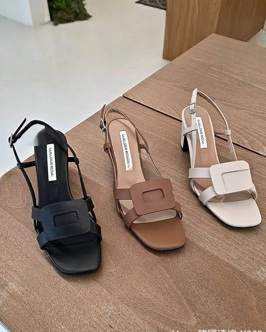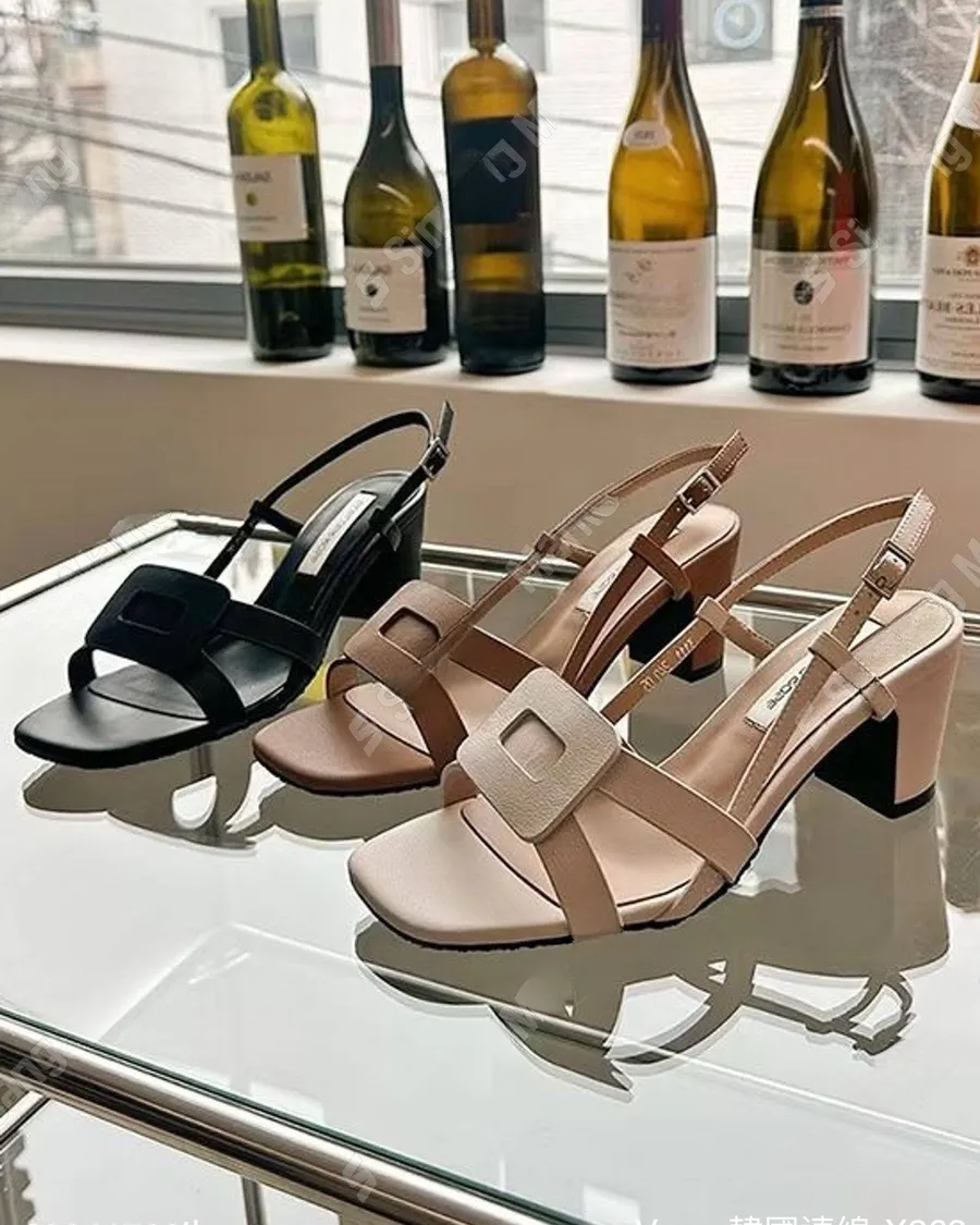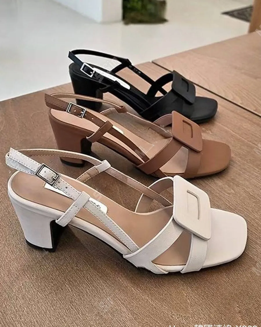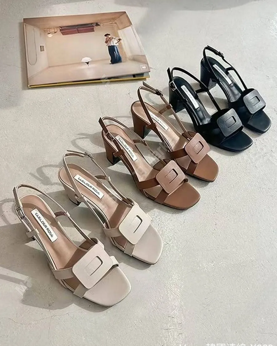 法式舒適方扣粗根涼鞋