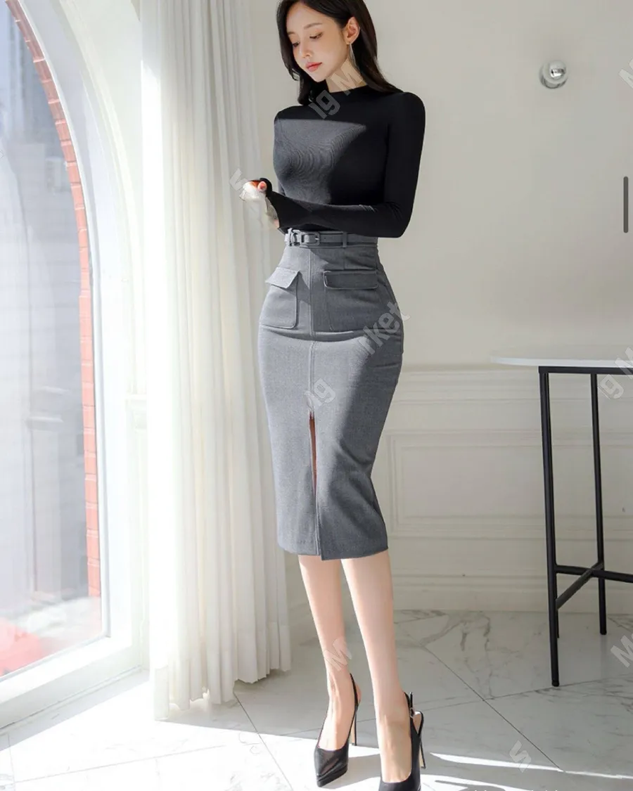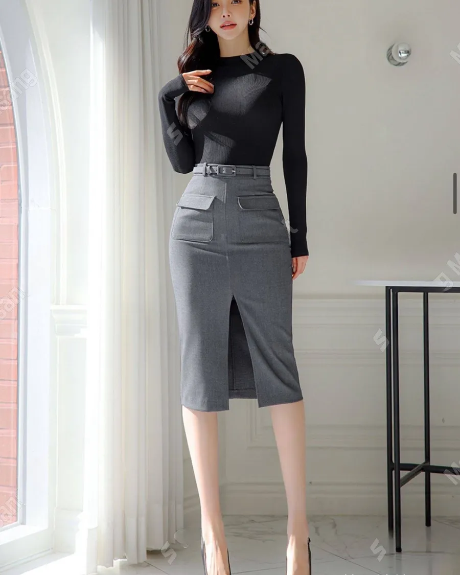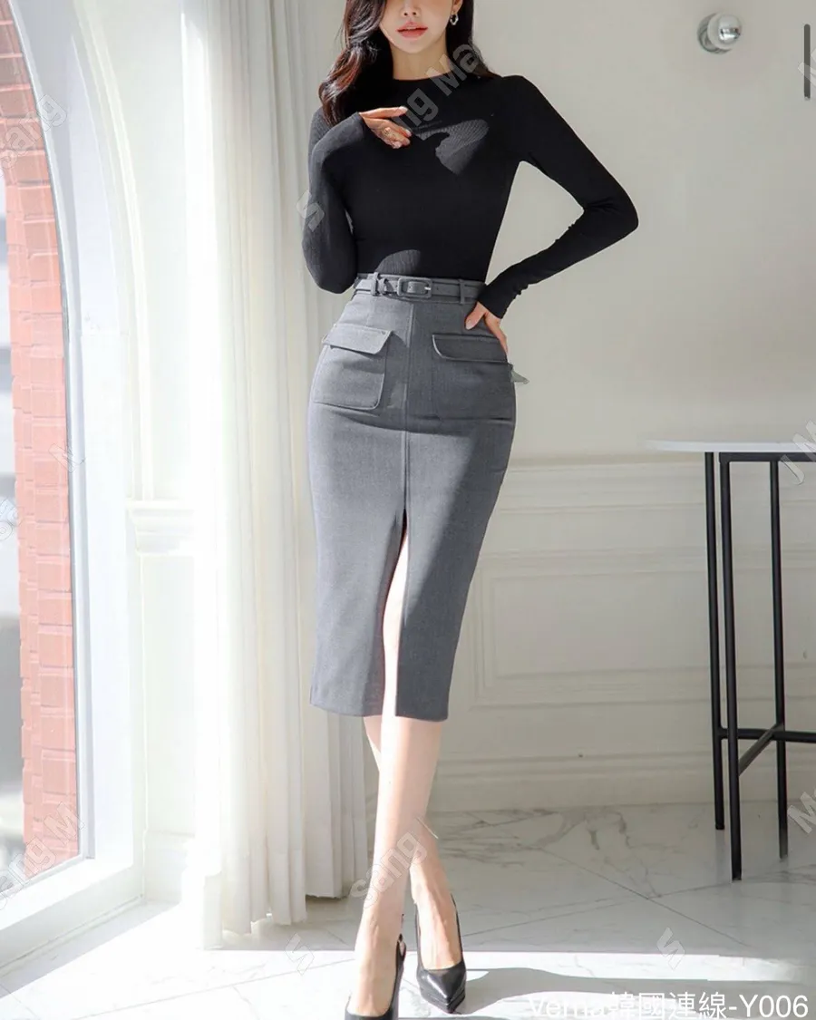 春季爆款高腰開衩包臀長裙