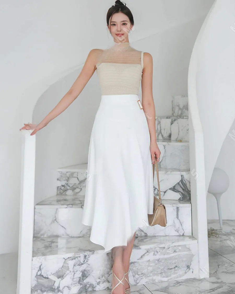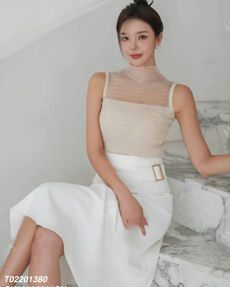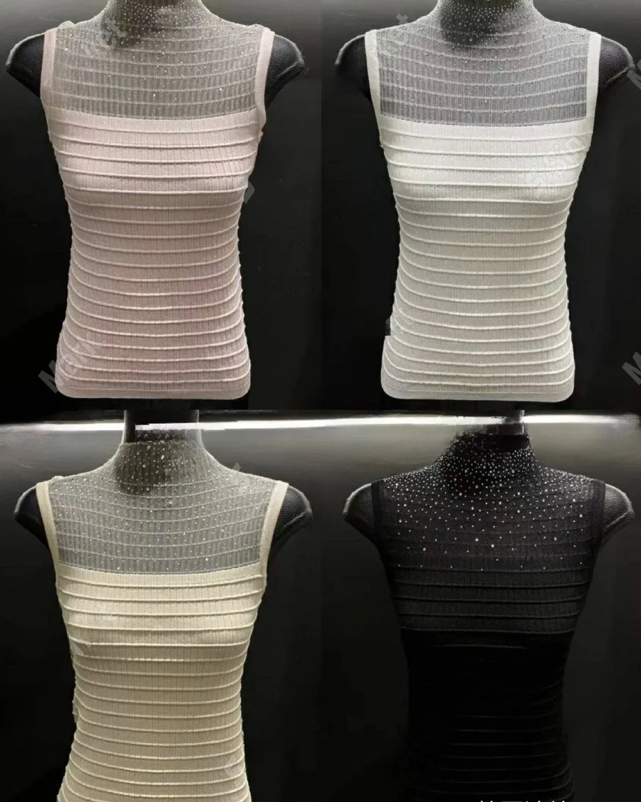 春季針織彈力無袖燙鑽上衣套裝