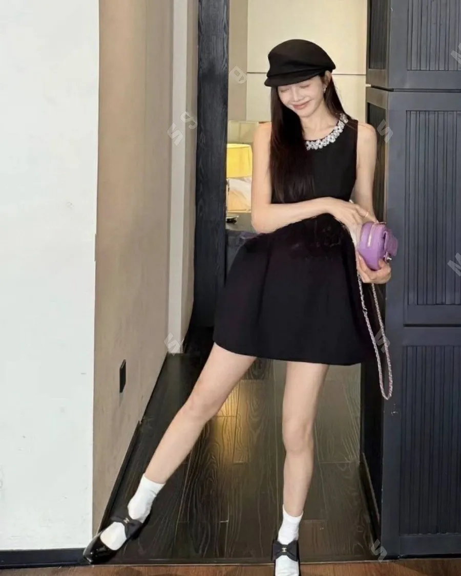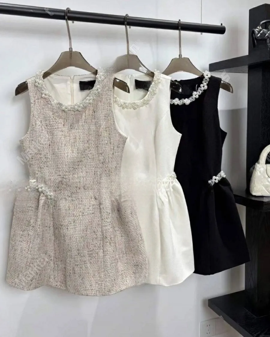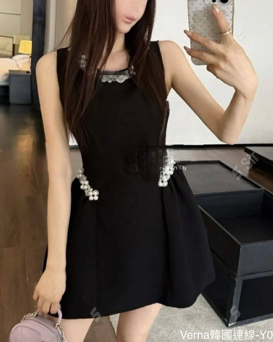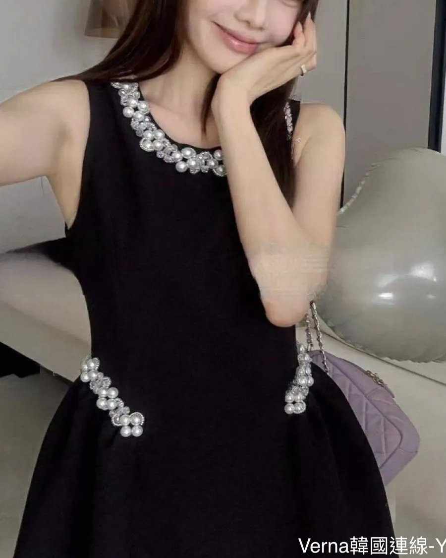 富家重工釘珠圓領無袖A字洋裝