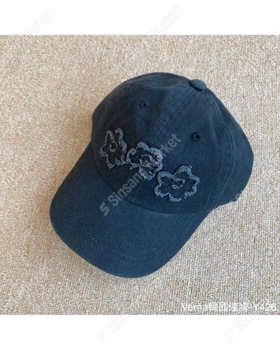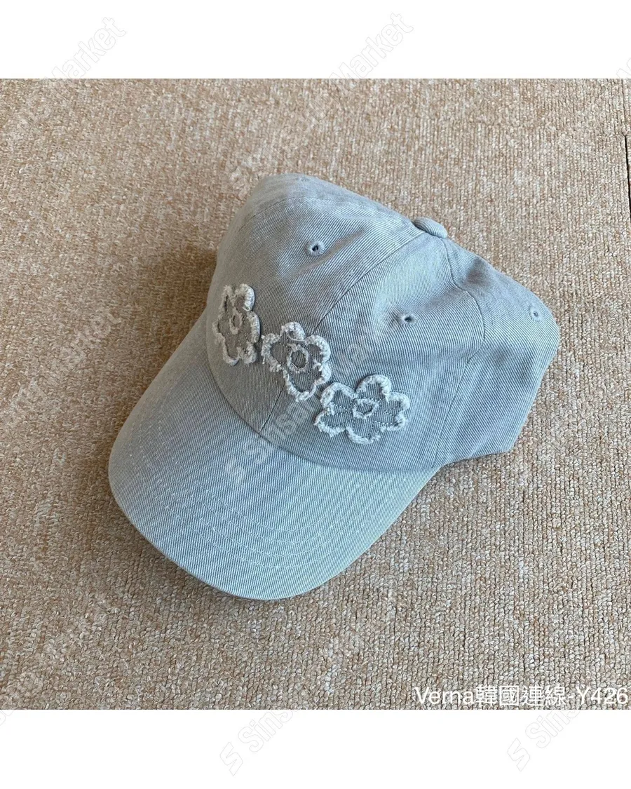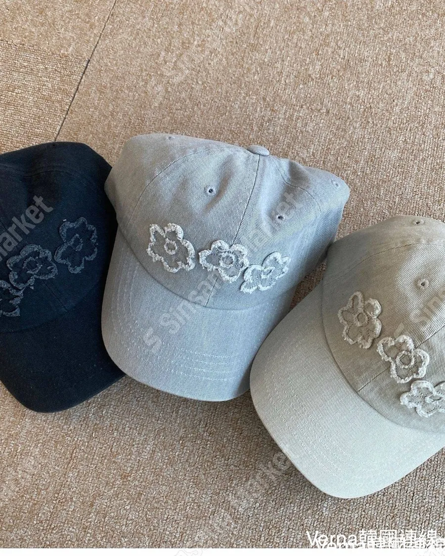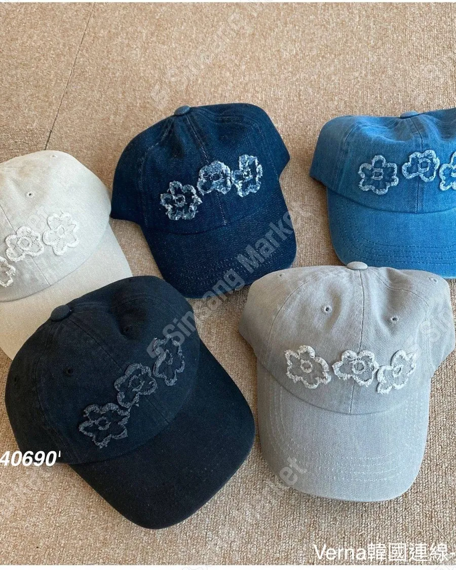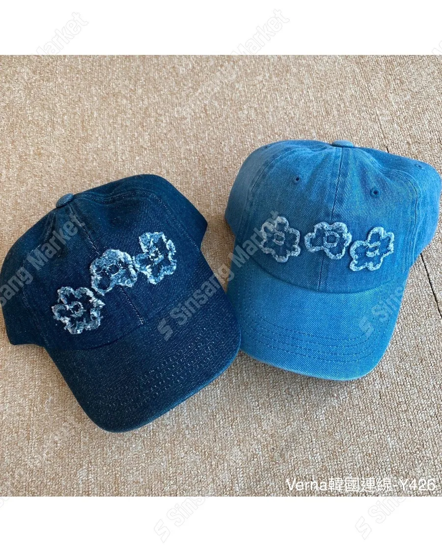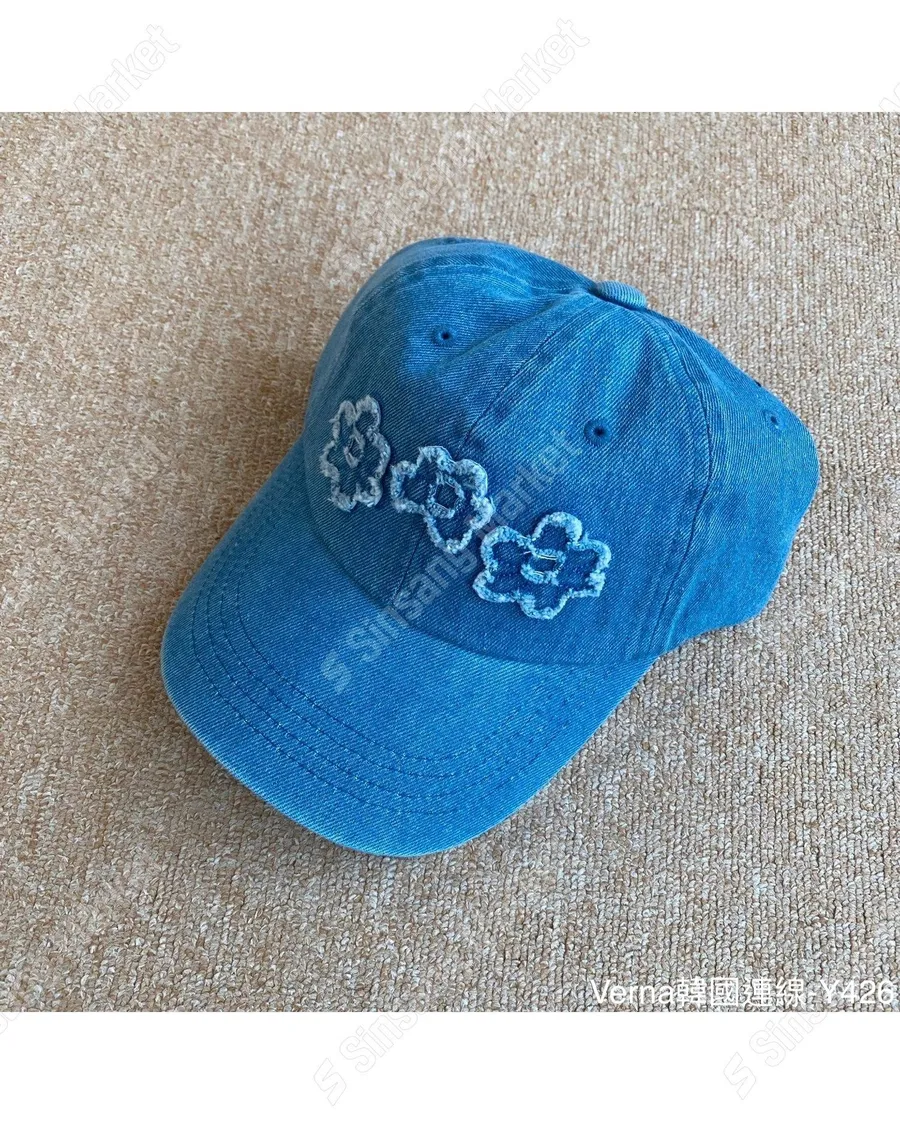 水洗牛仔貼布花朵棒球帽