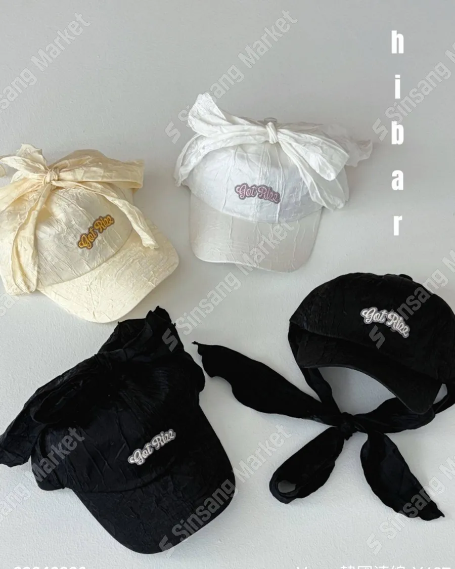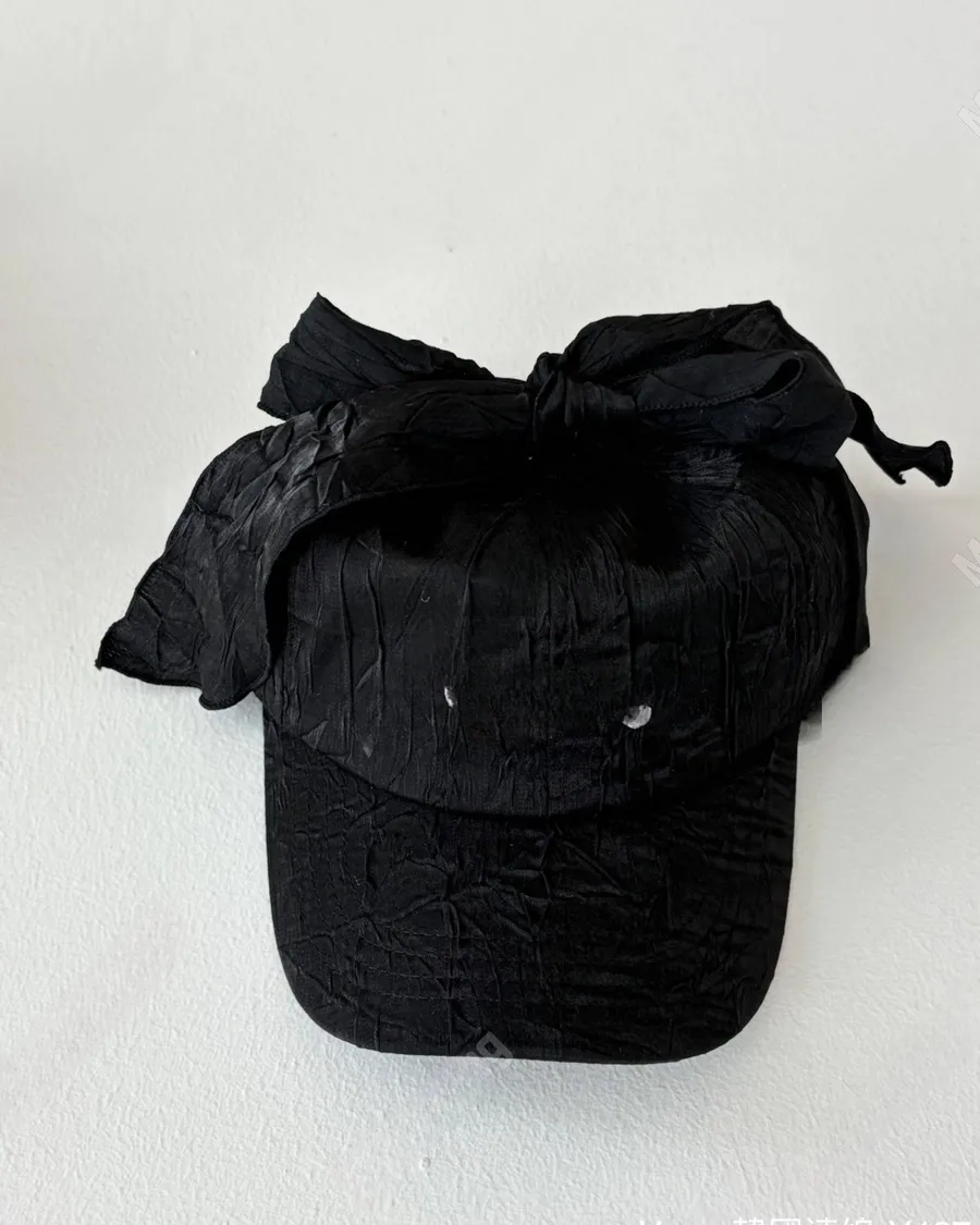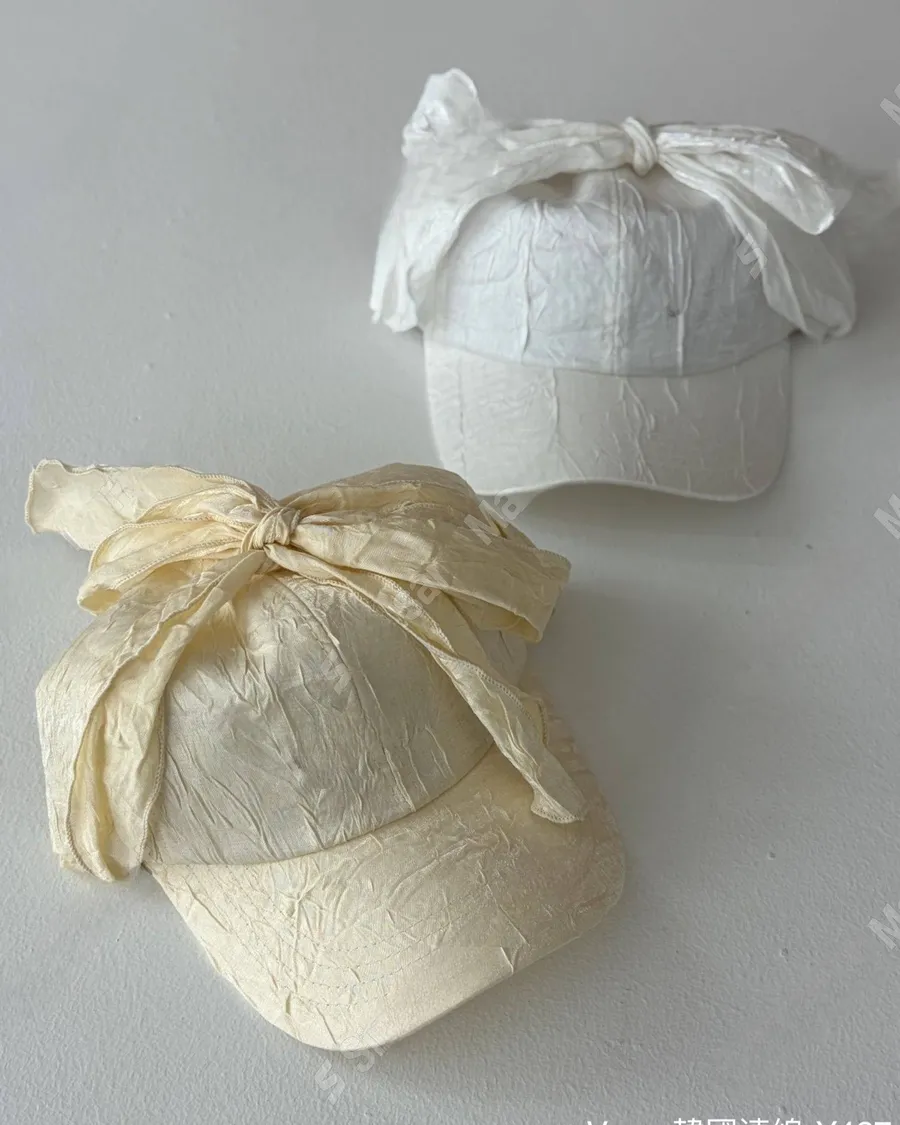 時尚皺摺紋理系綁帶蝴蝶結帽