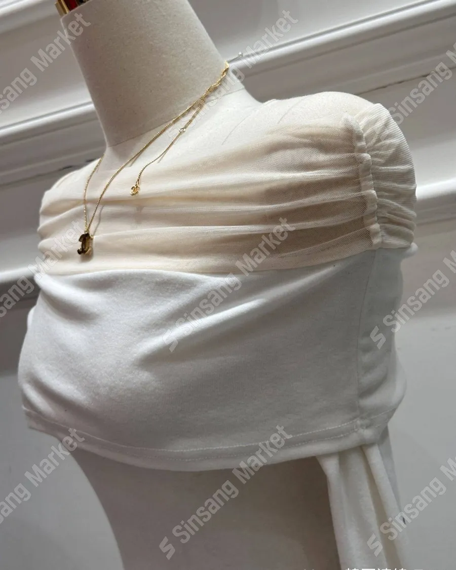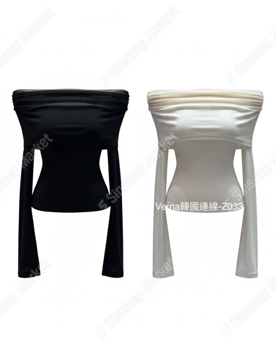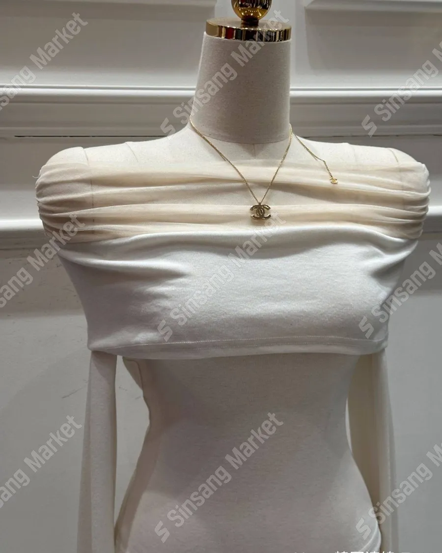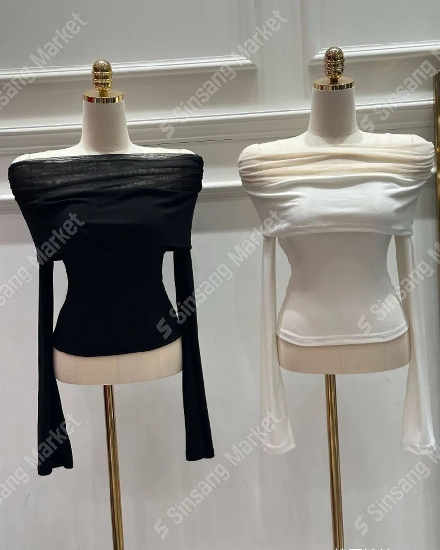 法式網紗一字領顯瘦長袖上衣