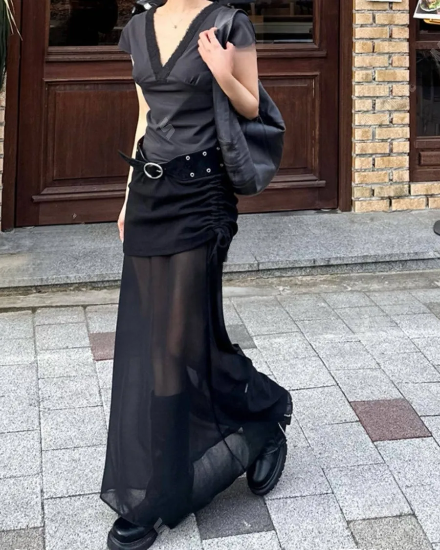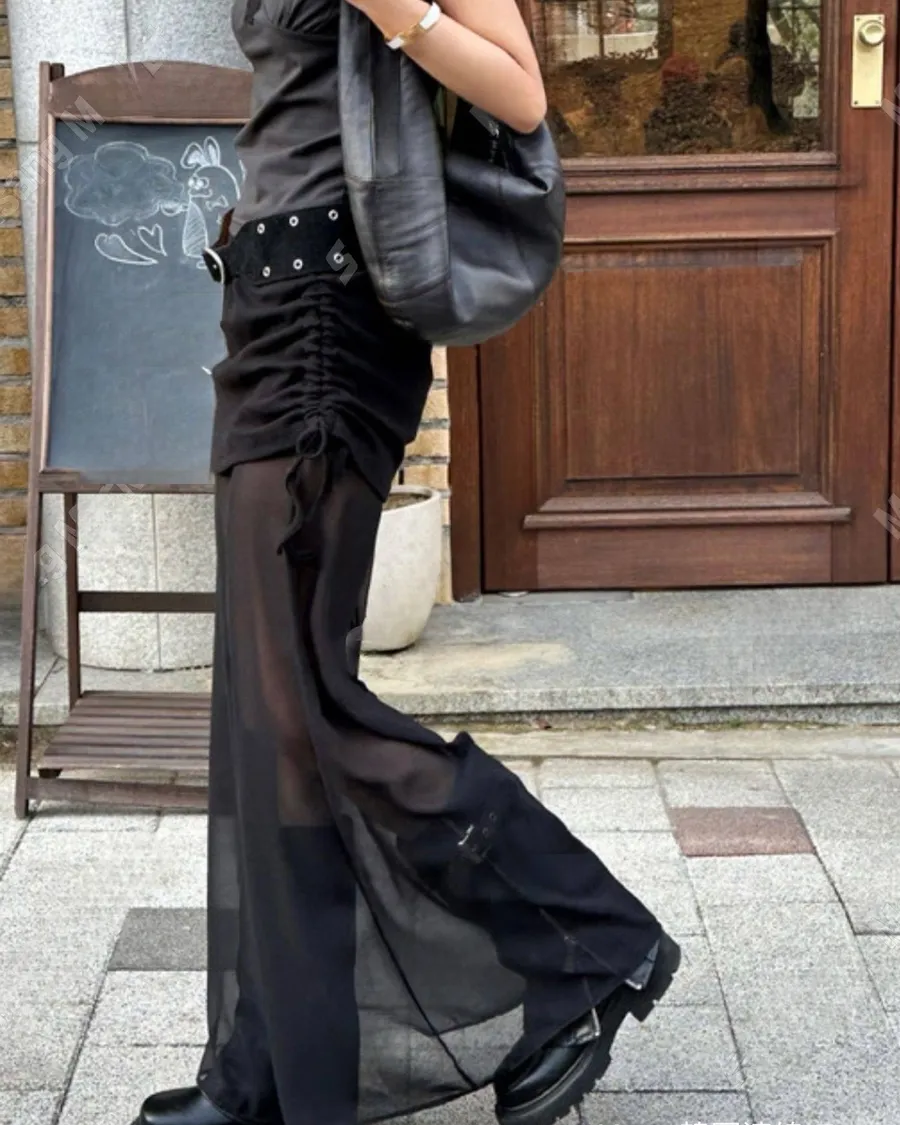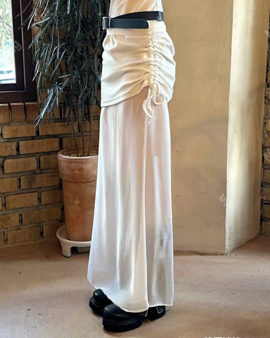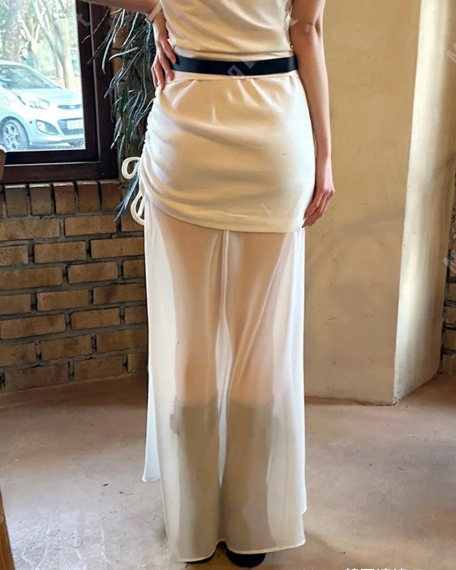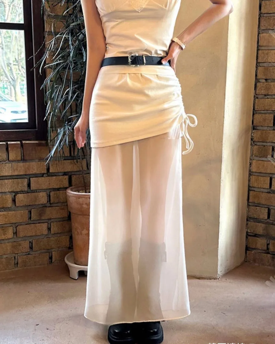 新款雙層抽繩設計款雪紡長裙