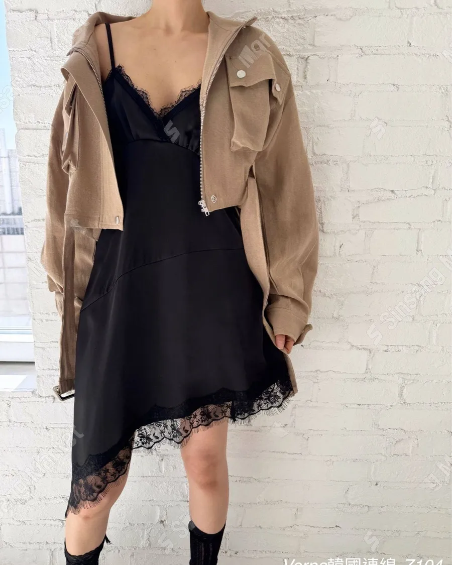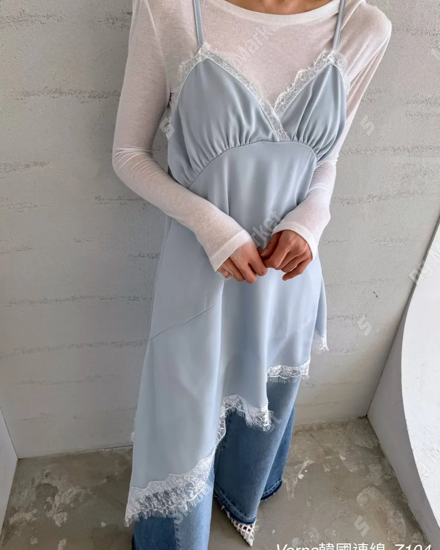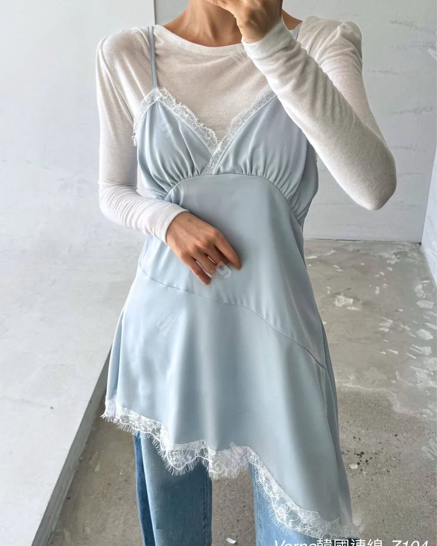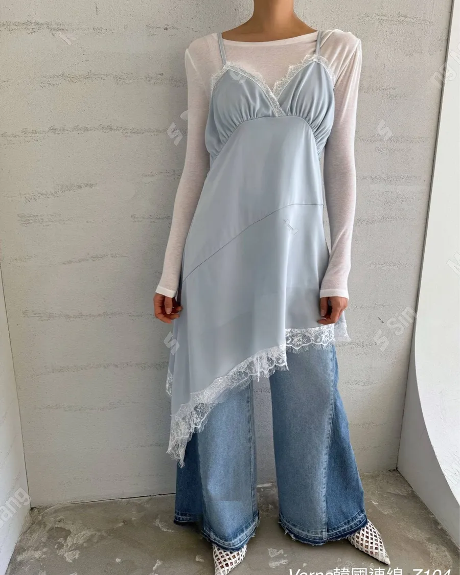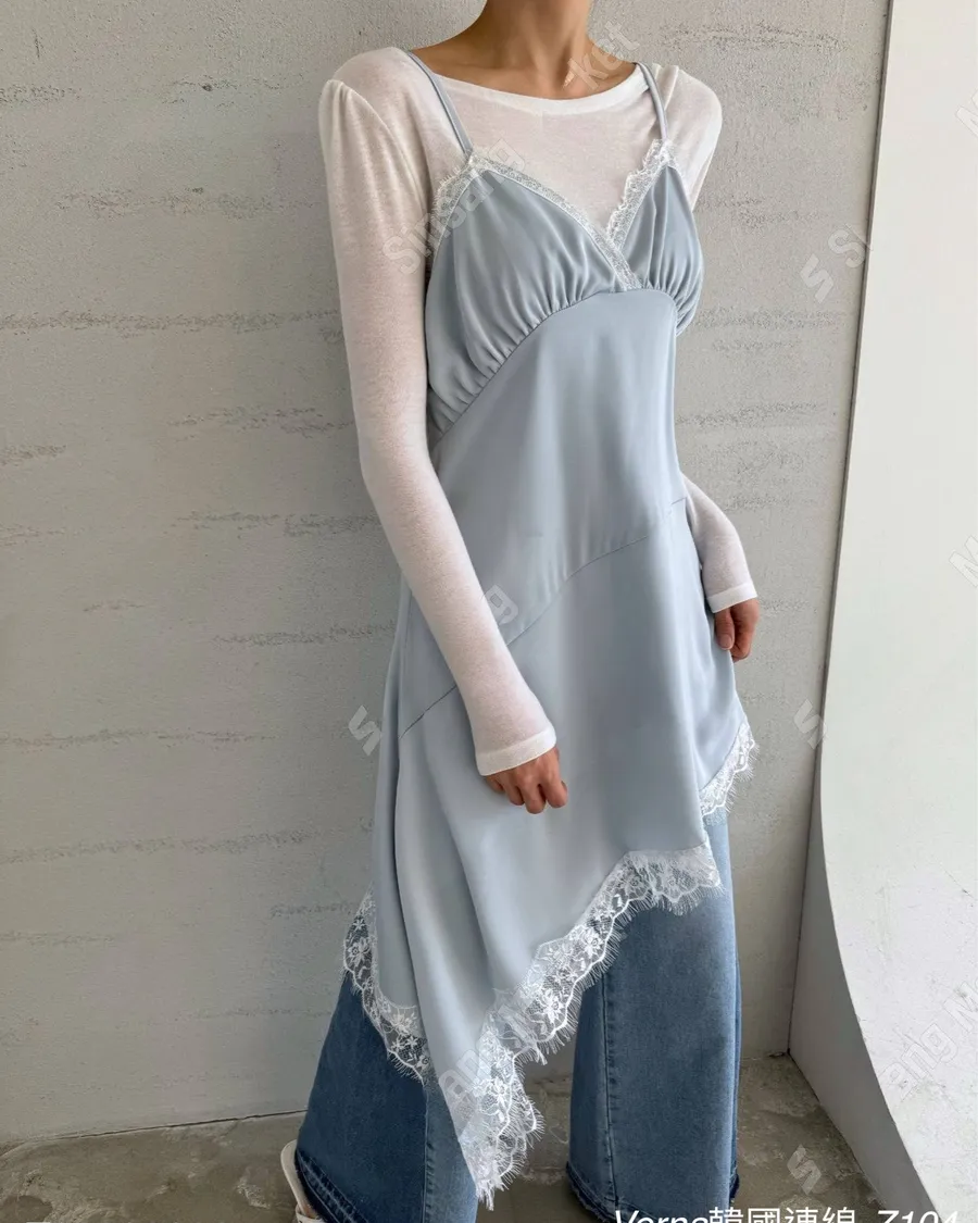 春季百搭蕾絲拼接疊穿吊帶洋裝