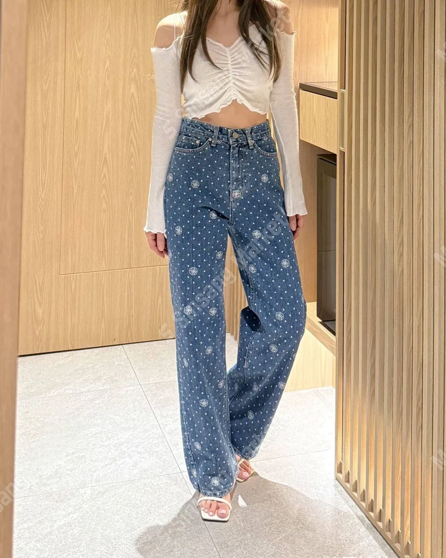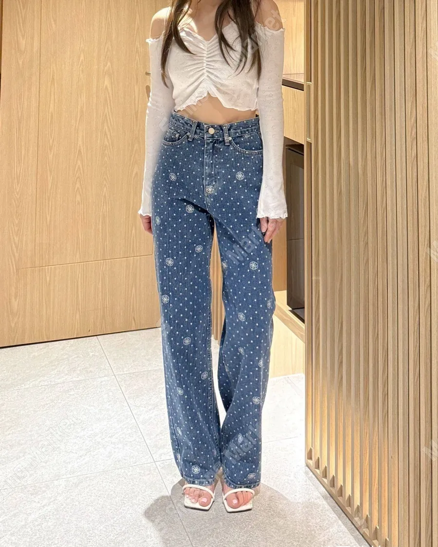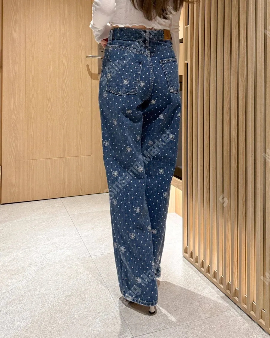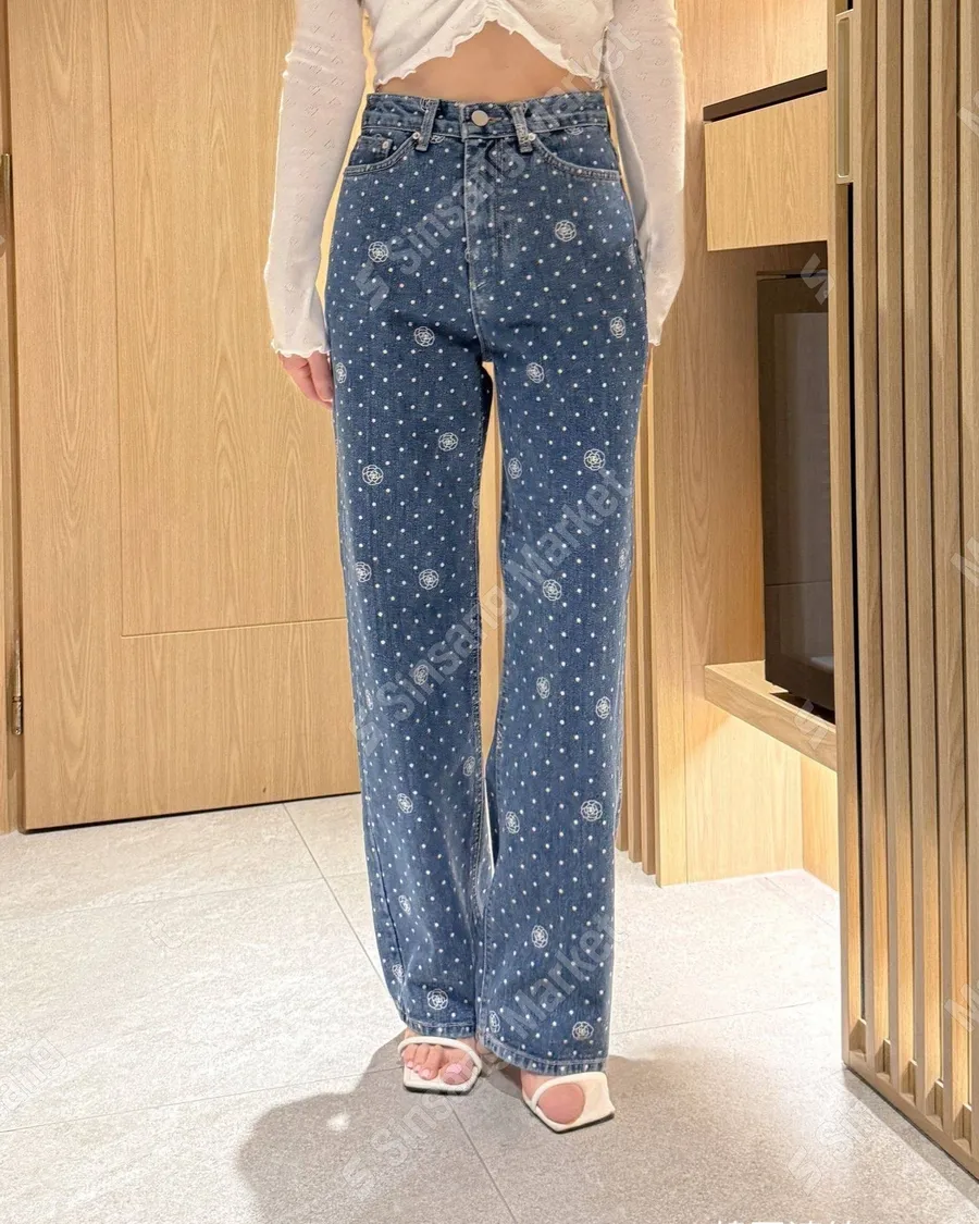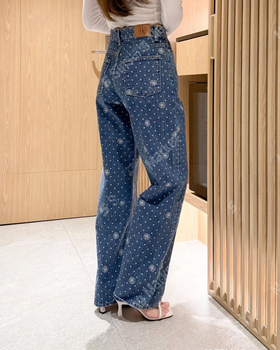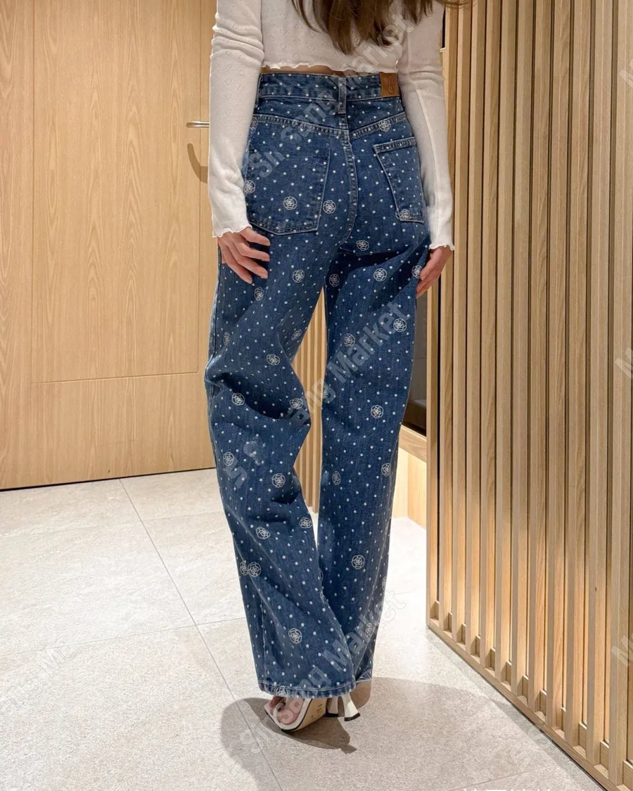 氣質印花點點直筒牛仔褲