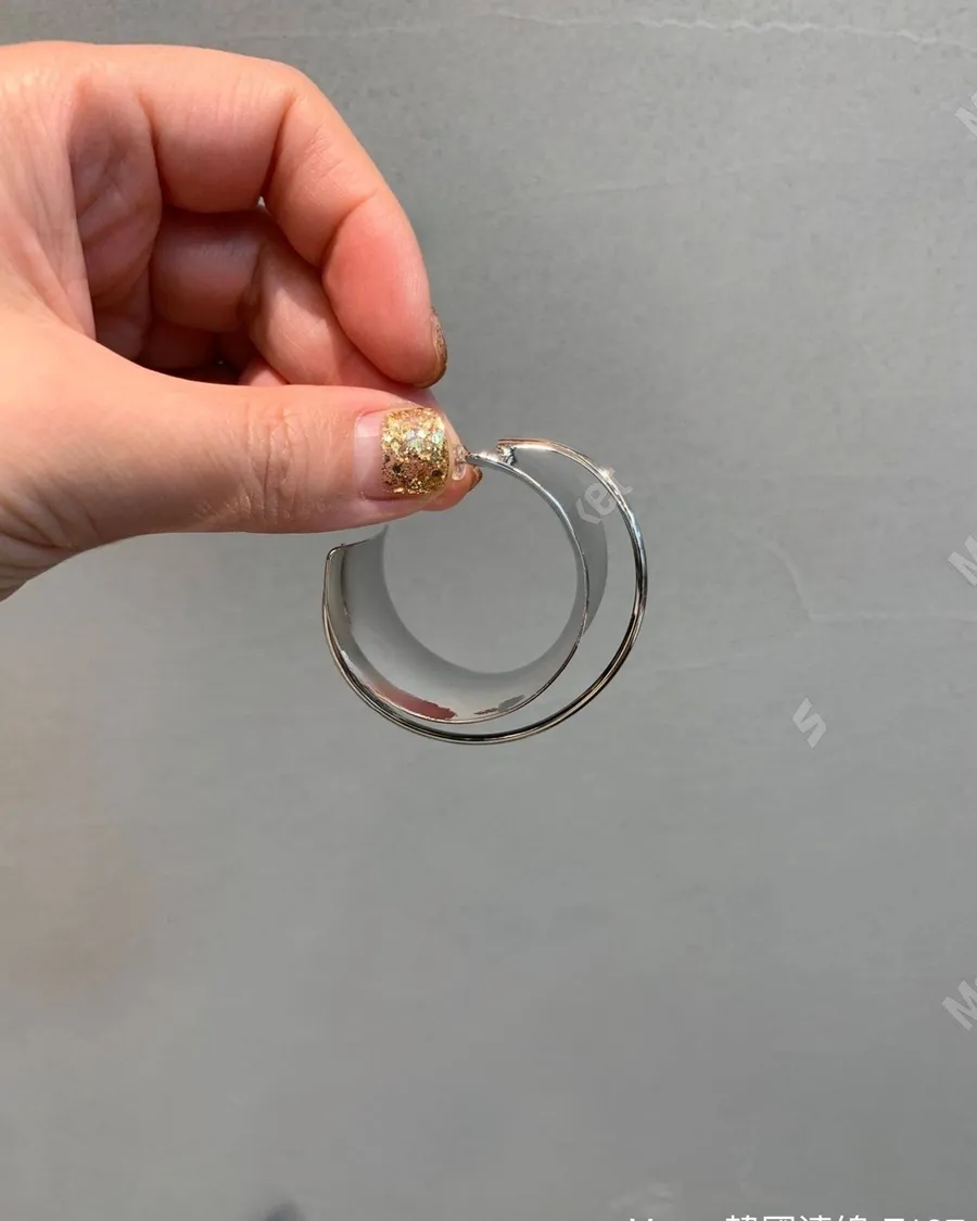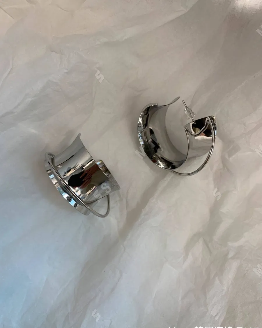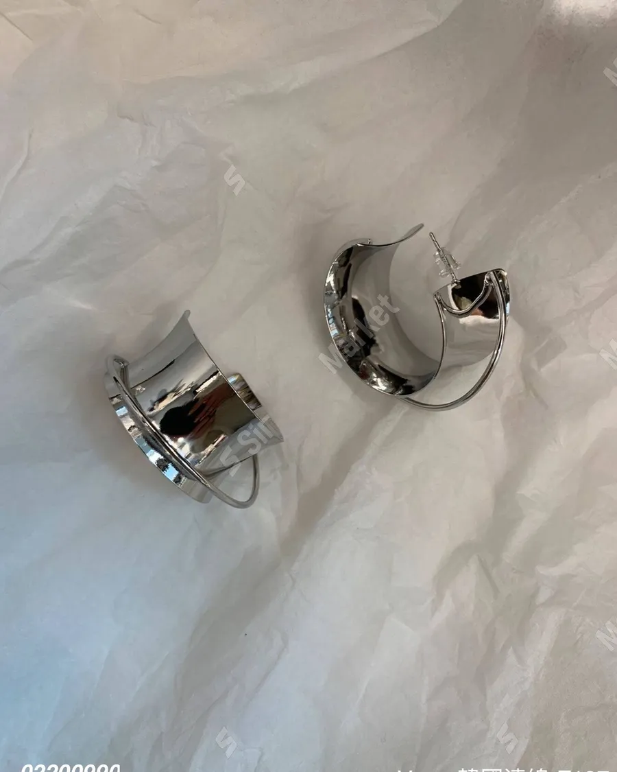 歐美簡約幾何寬面銀色耳飾