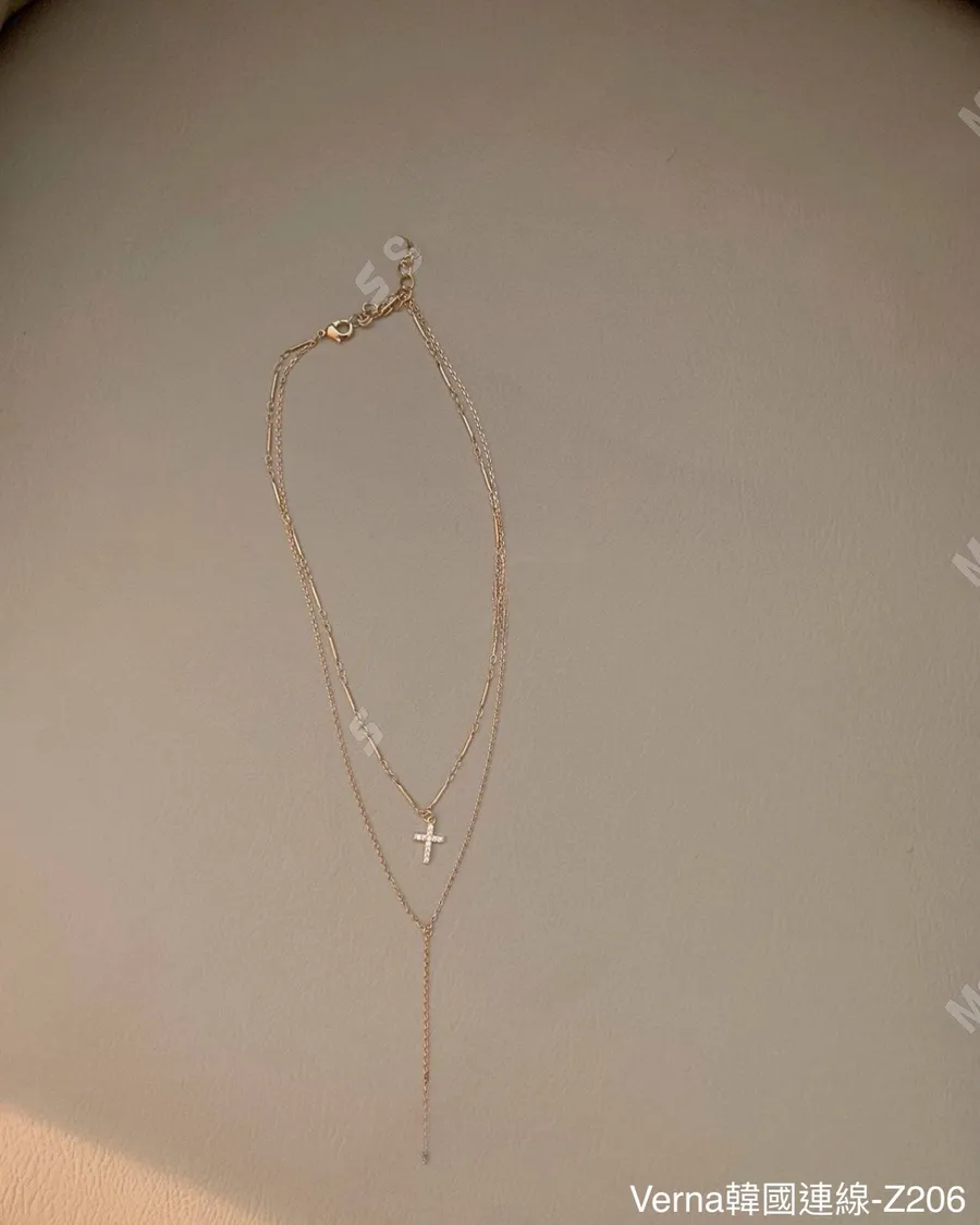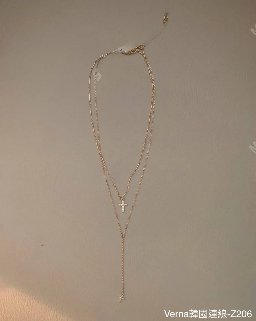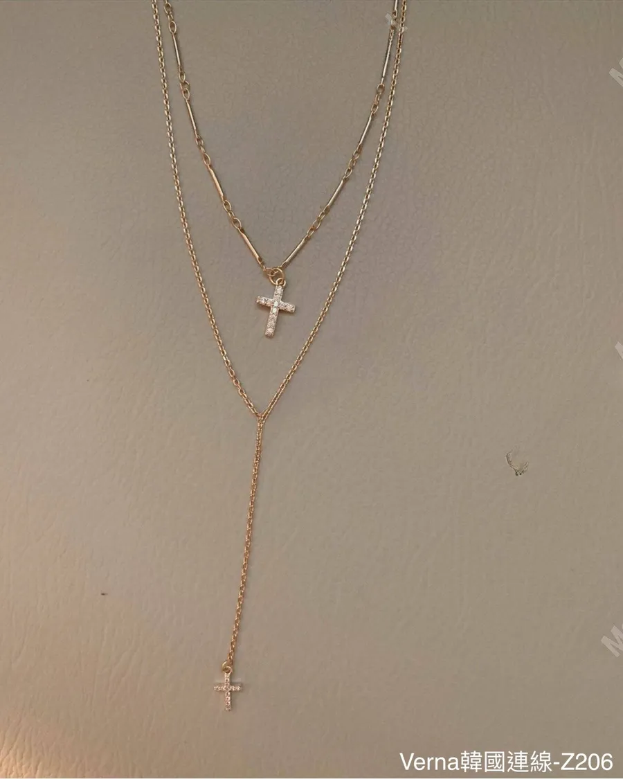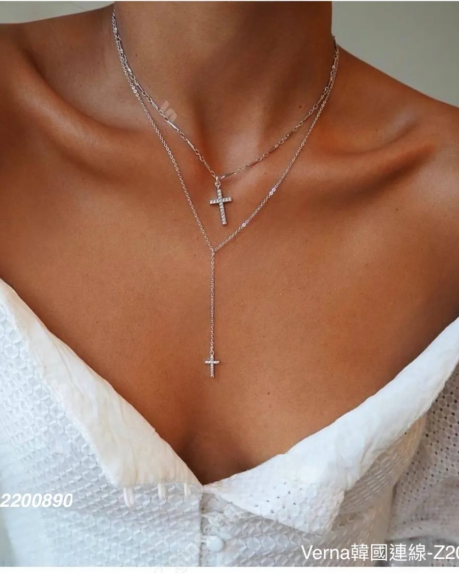 歐美簡約雙層十字架項鏈