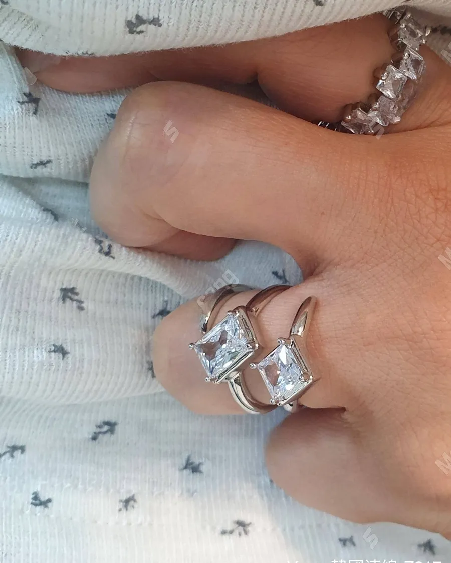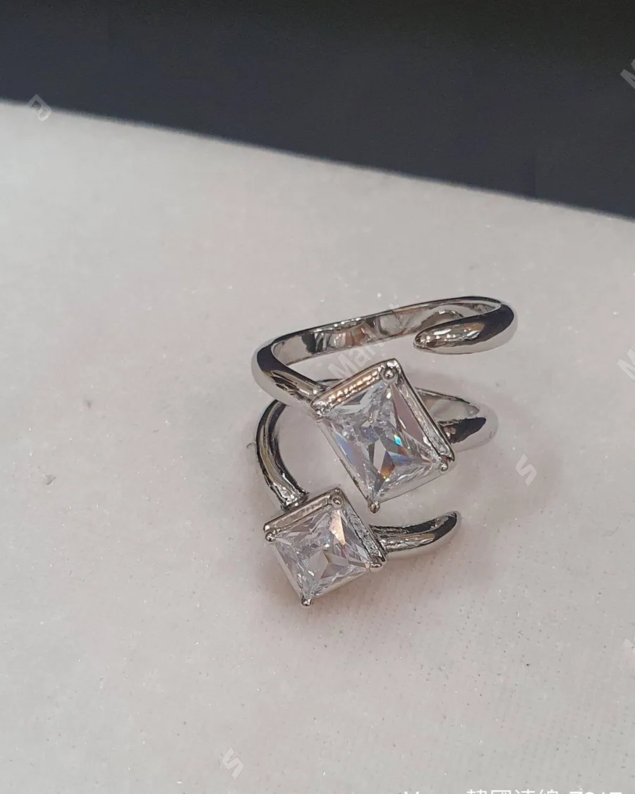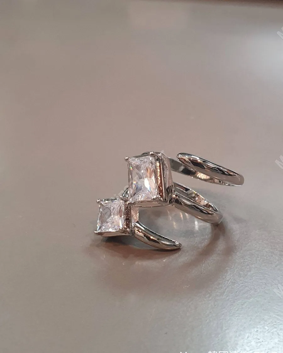 冷淡風鋯石開口螺旋戒指