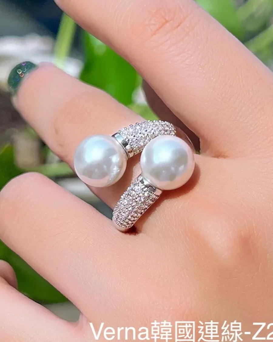 輕奢小眾雙開口鑲鑽戒指