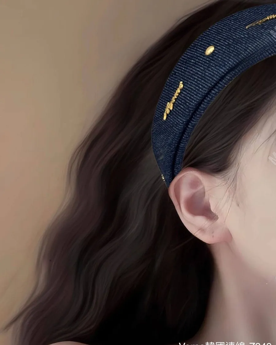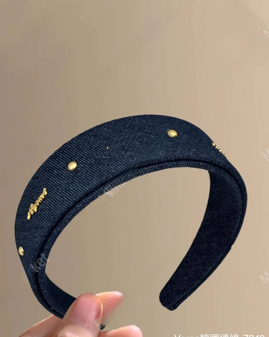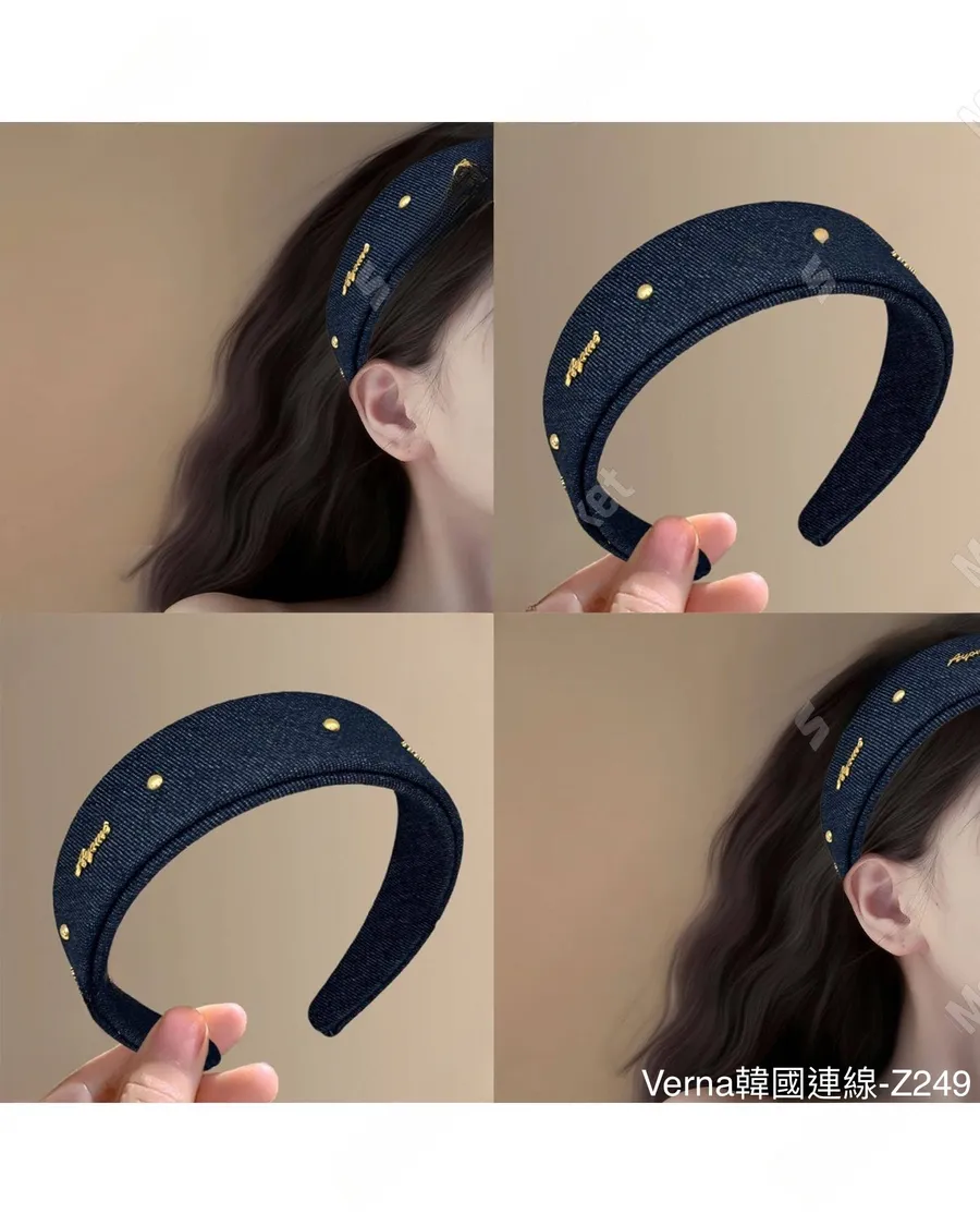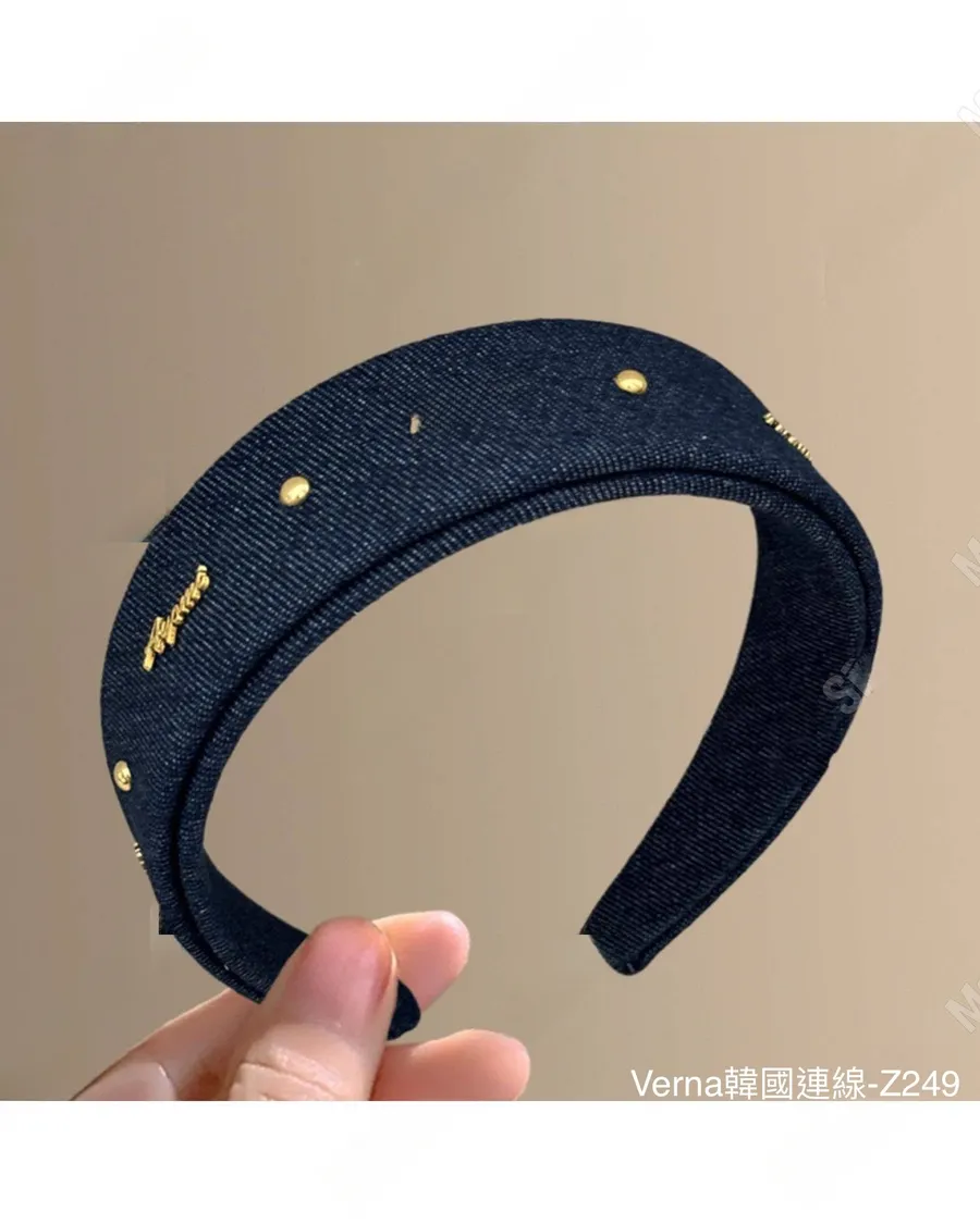 韓系牛仔深藍字母髮箍