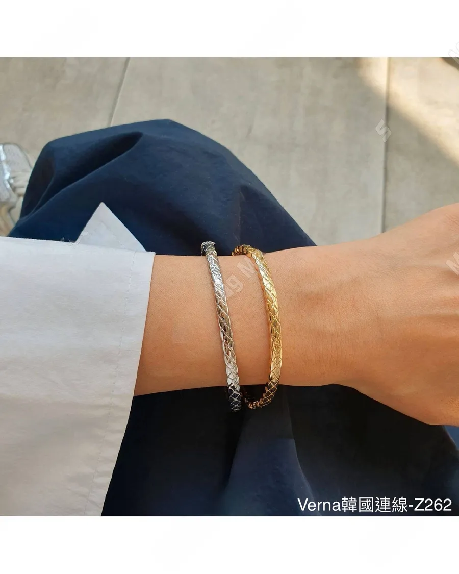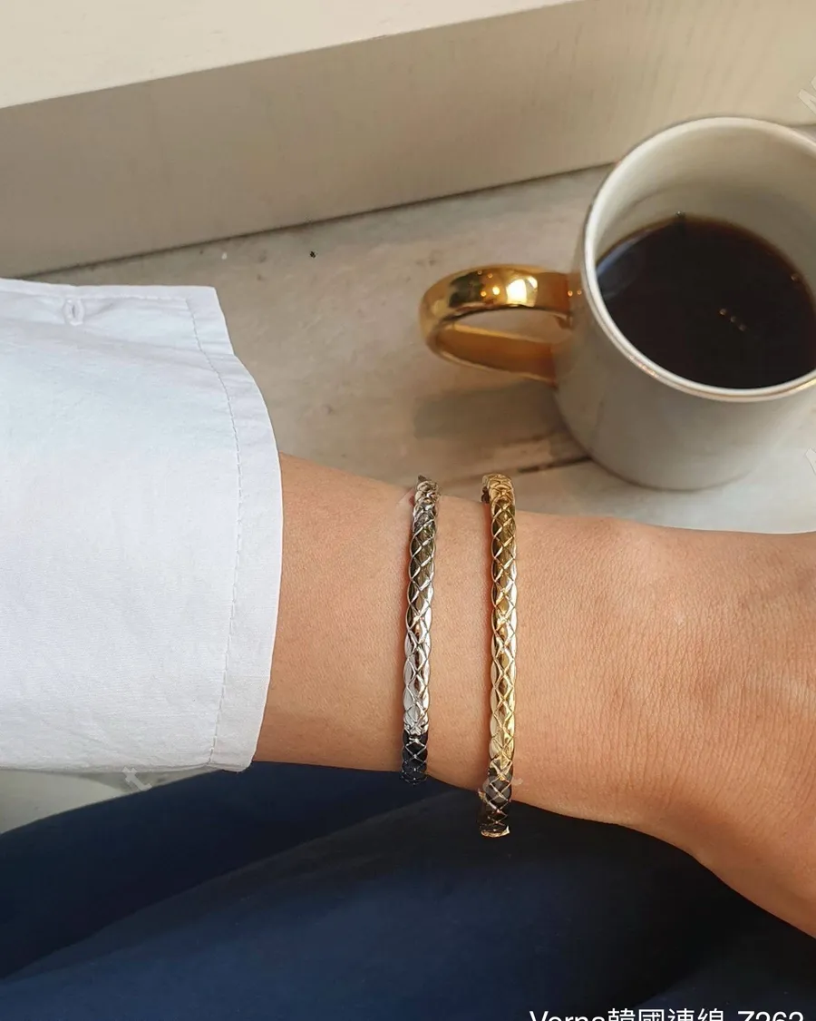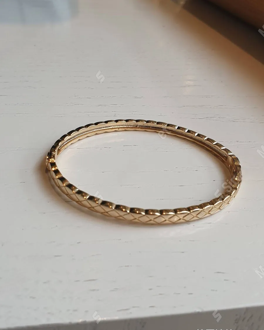 菱格紋窄版玫瑰金手鐲