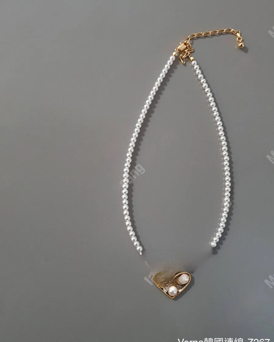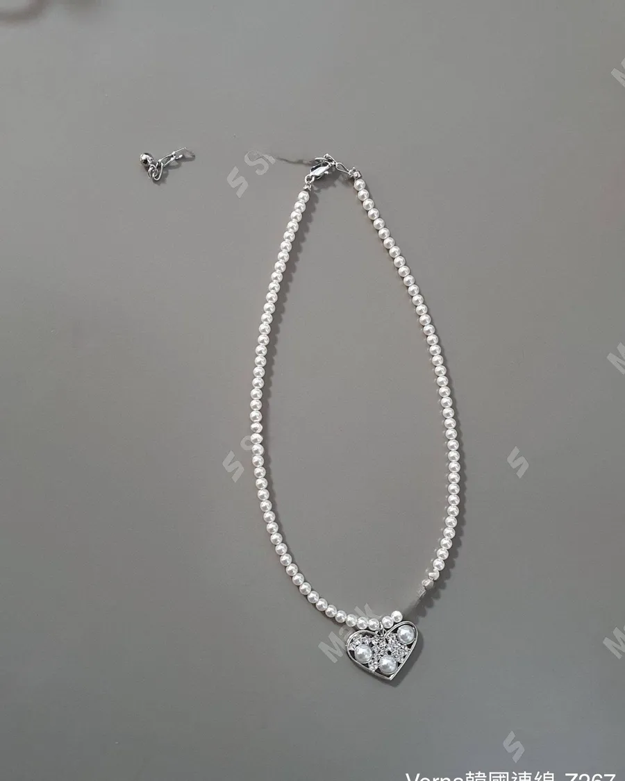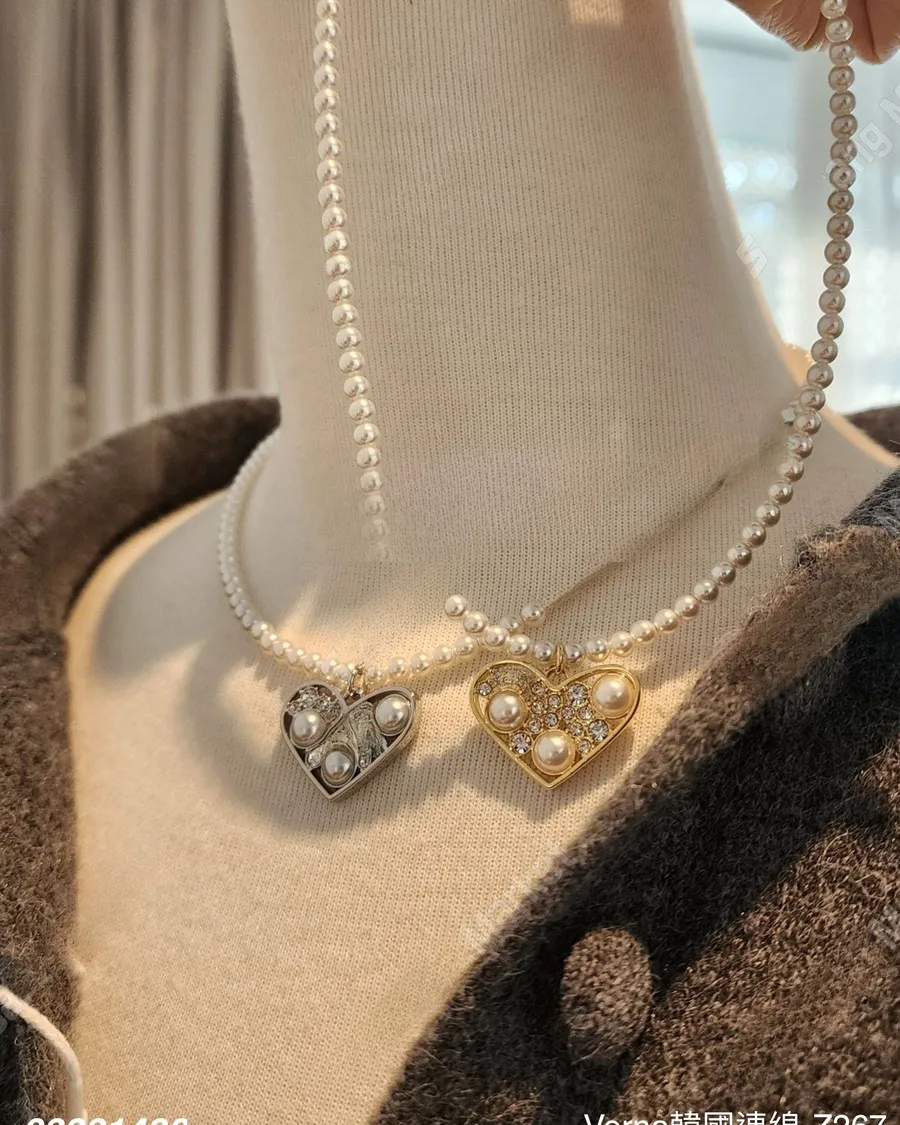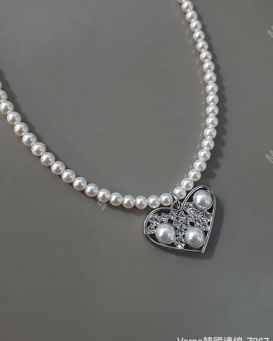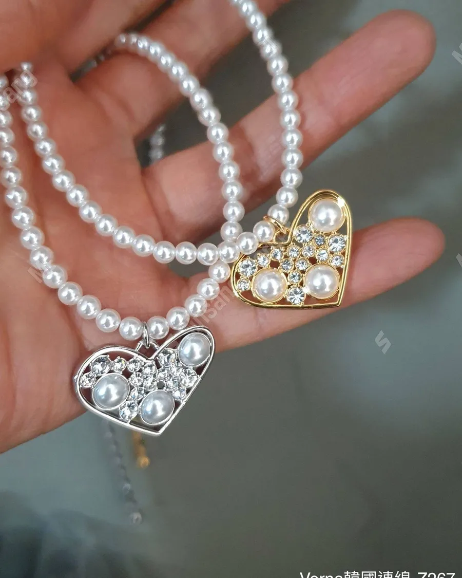 歐美銅鍍愛心鋯石珍珠項鏈